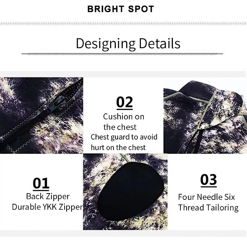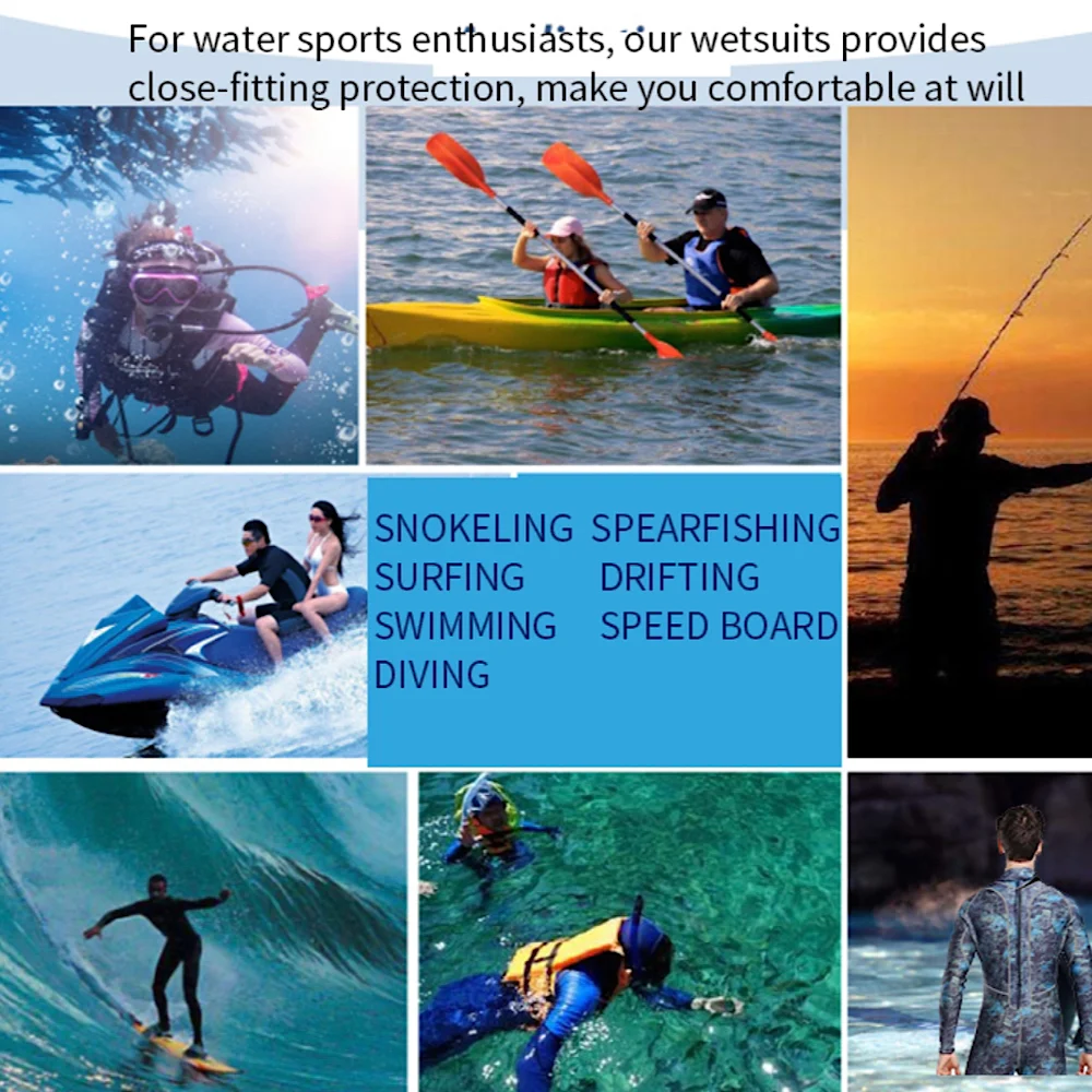 Warmth and Protection: 1.5MM/3MM neoprene camouflage diving suit provides ample thermal protection and defense against sea lice, jellies and other biological irritants