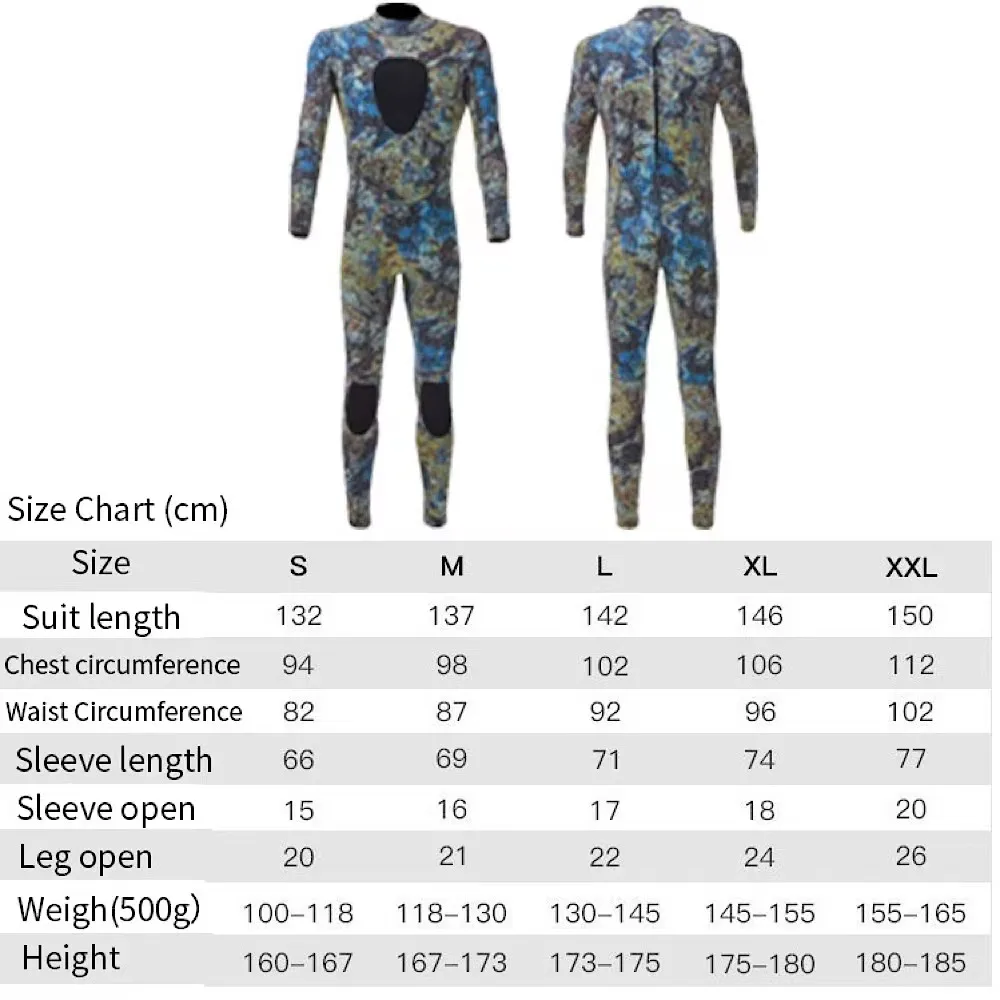 WARM TIPS: We have improved the wetsuit size based on customers’ feedbacks, and the size chart is update, please choose the right size according to the size table. Due to the manual measurement, spearfishing Wetsuit size exits ±2cm.