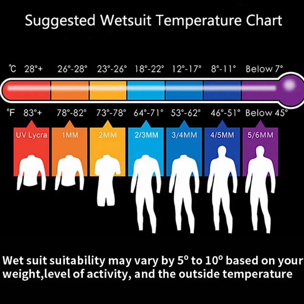 Mens and womens wetsuit, S,M,L,XL,XXL.If your body size is between the two sizes in the chart, PLEASE SELECT ONE SIZE BIGGER THAN RECOMMENDED.