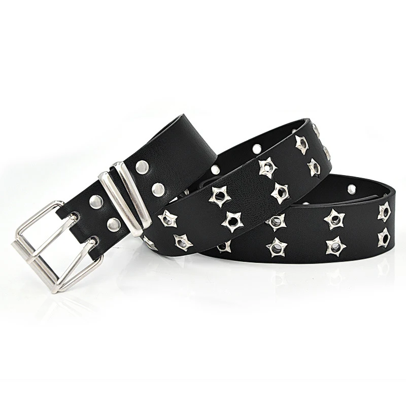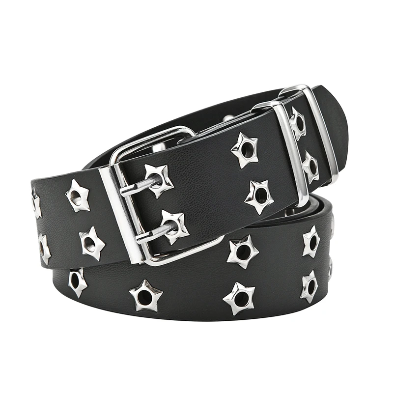 2022 Women Star Eye Rivet Belt Double Star Eyelet Grommet Waist Strap Hollow Out PU Leather Jeans Decorative Fashion Waistband
