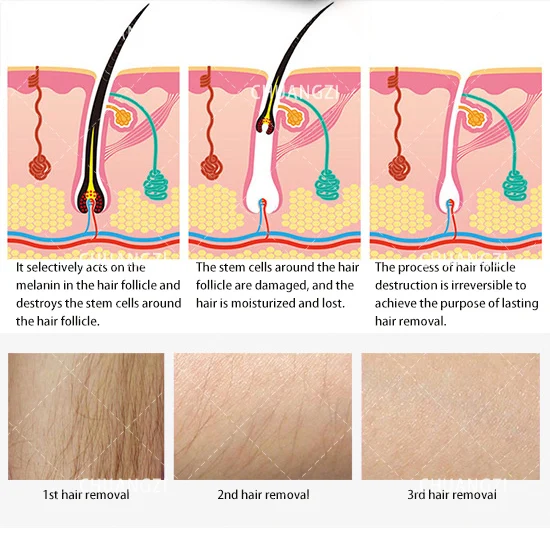 3. Effective for the hair follicles produce heat accumulation, Permanent Painless hair removal.