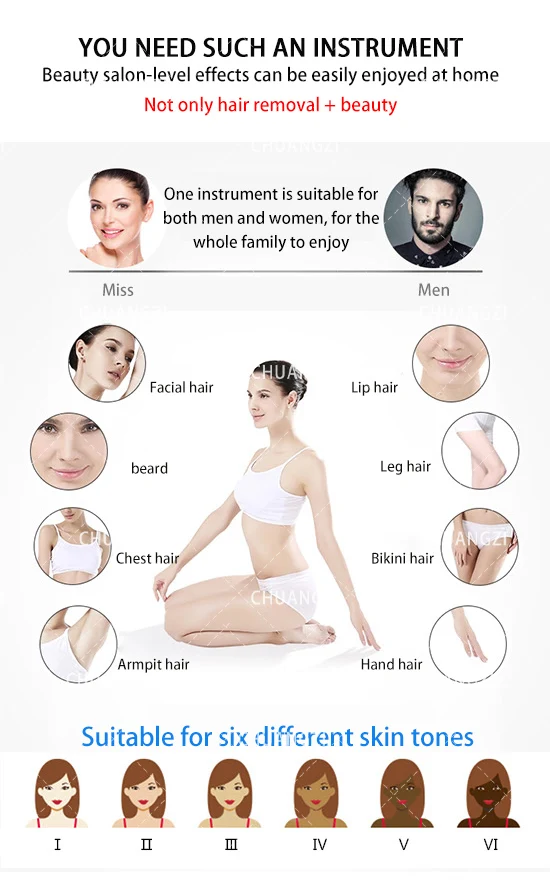 4. Almost no skin scattering, no harm to the skin and sweat glands, no scar, no any side-effect