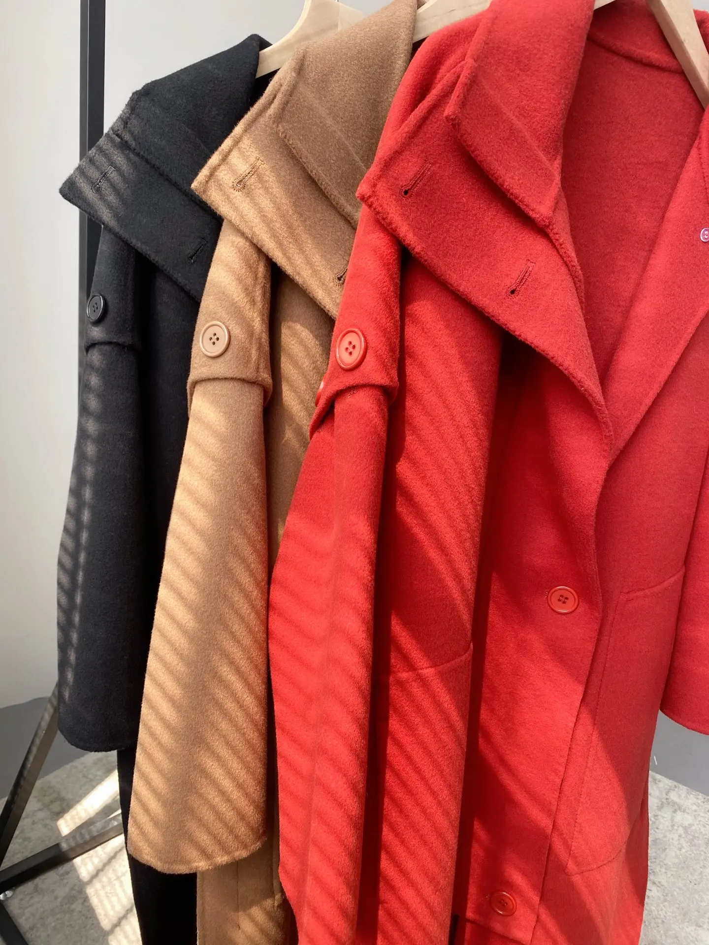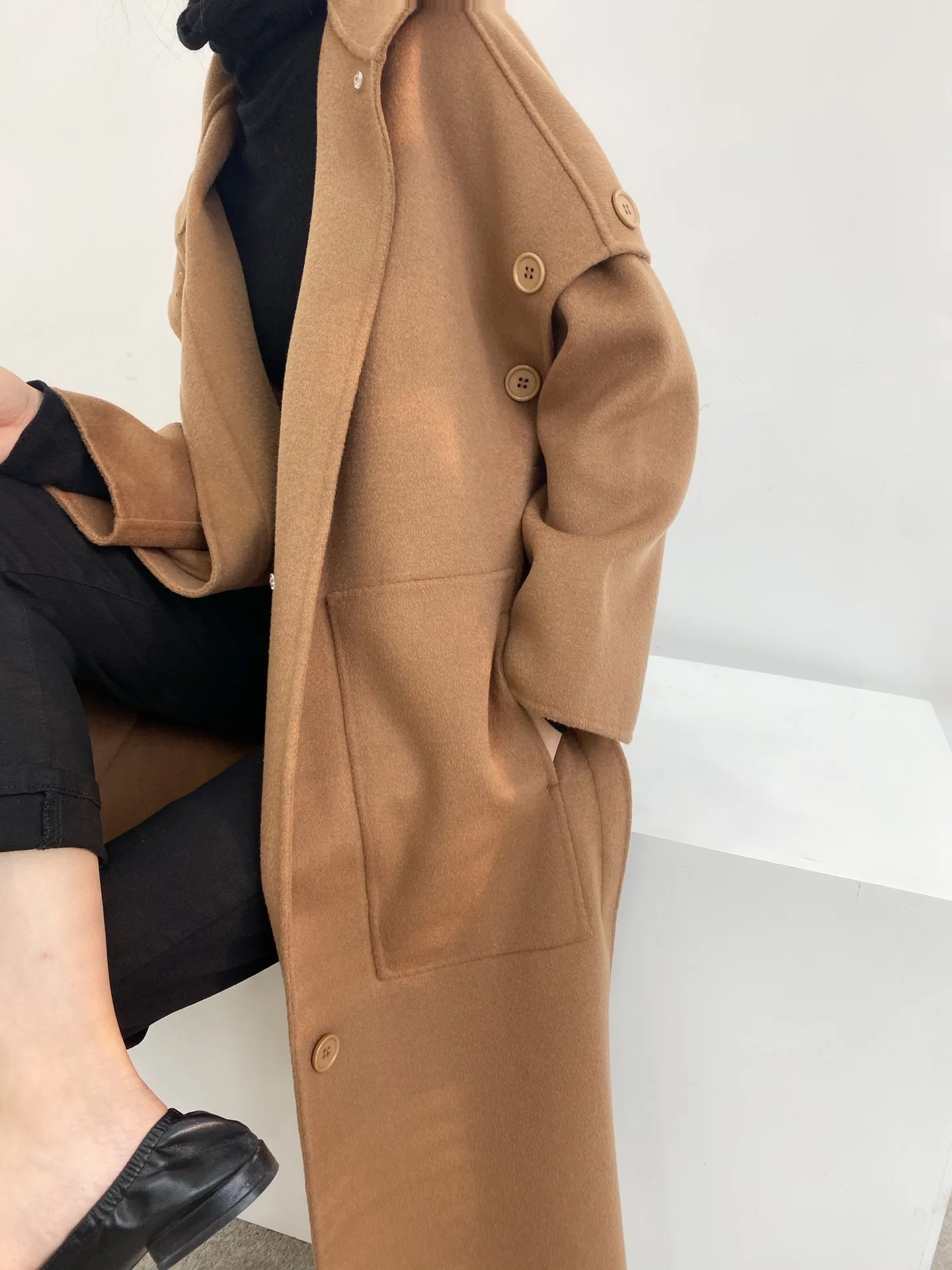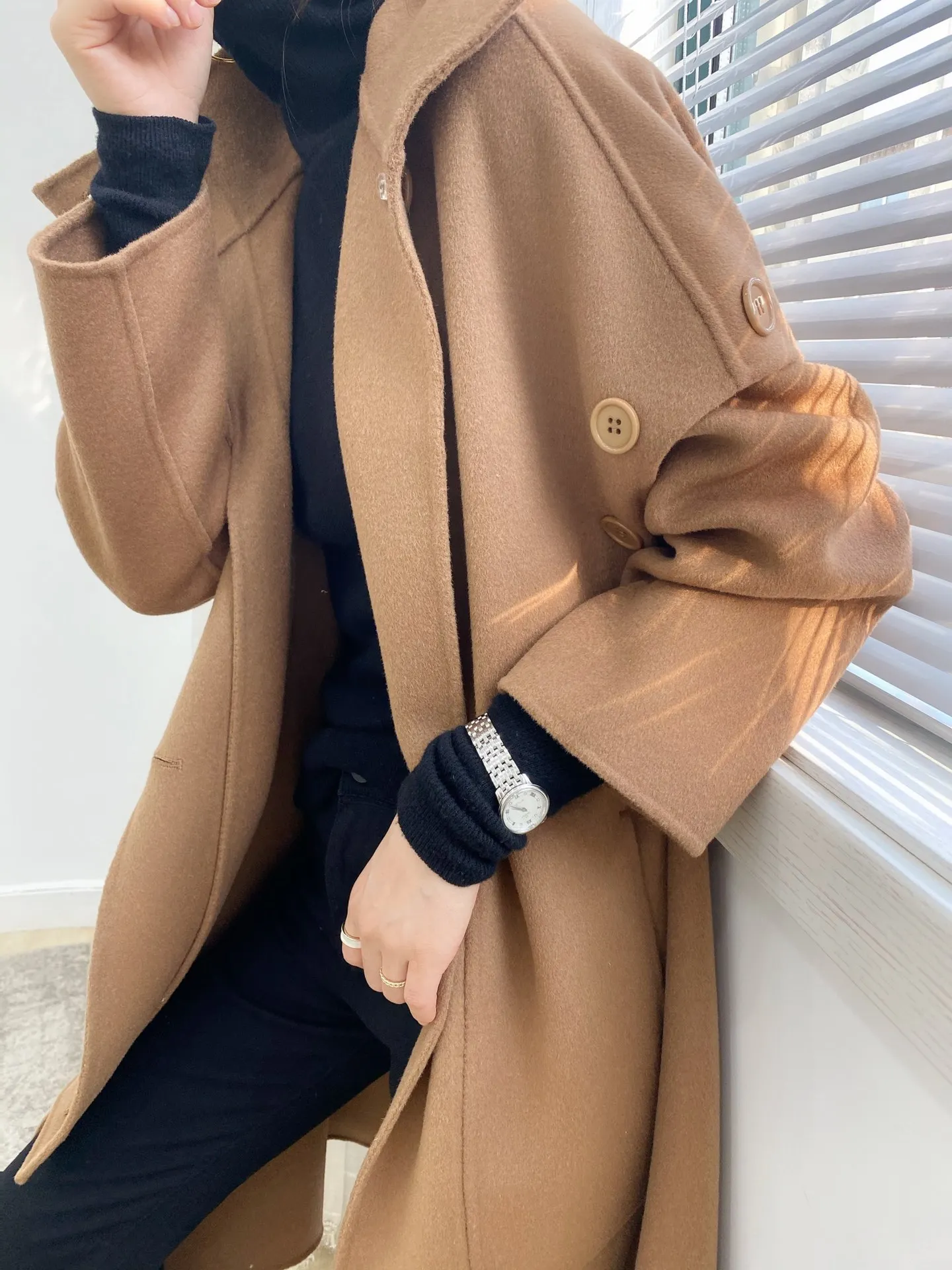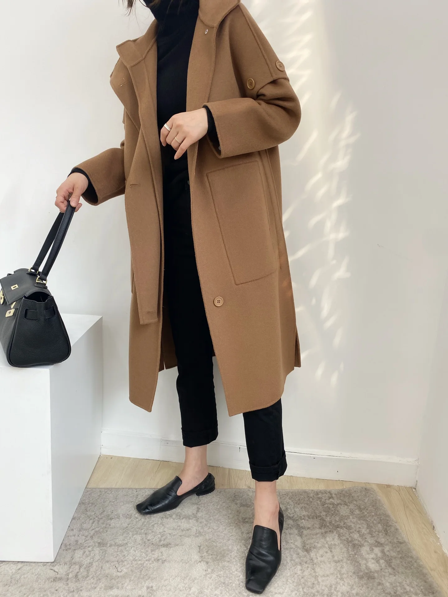 2023 Max cashmere coat for women in the autumn and winter of medium length double-sided wool coat handmade high-end nightgown