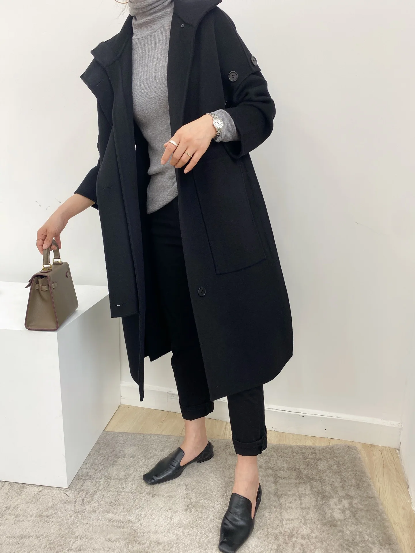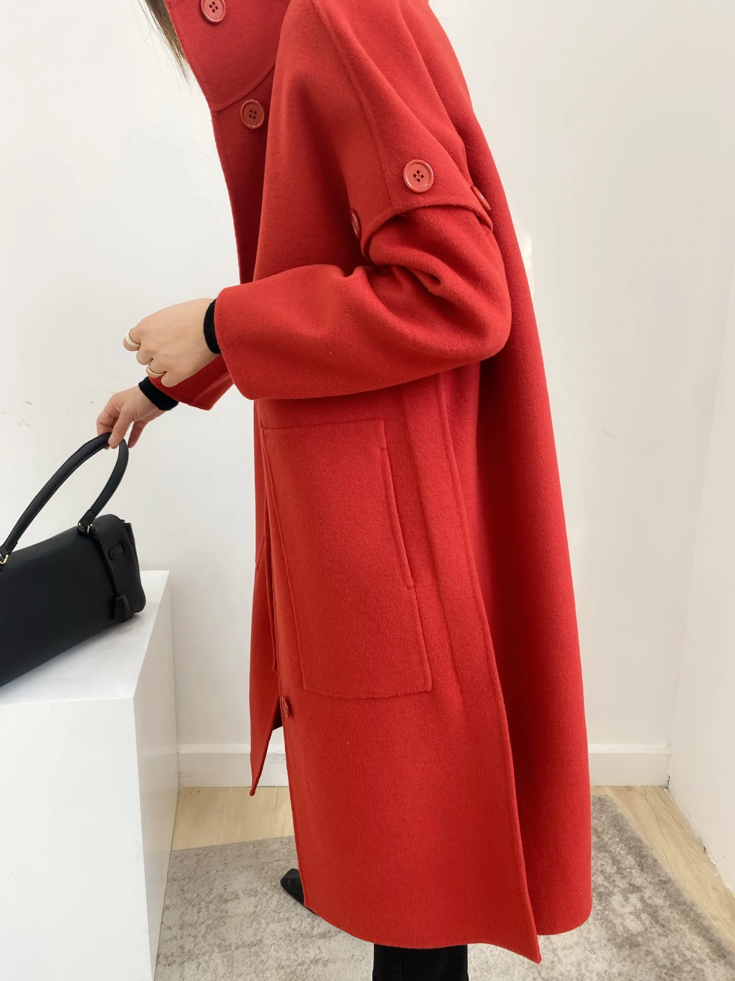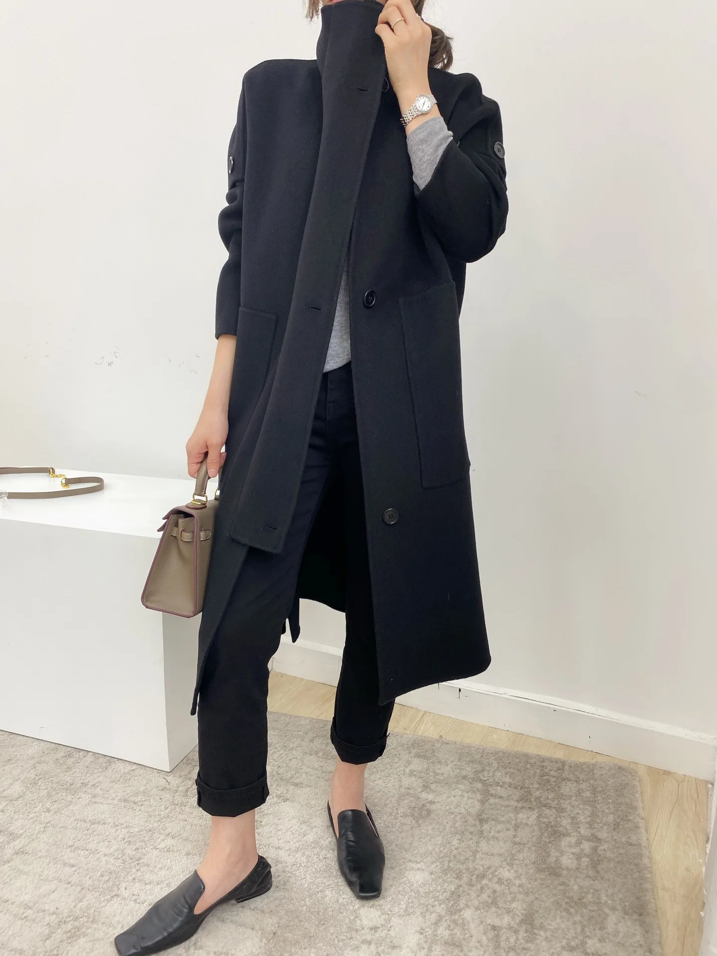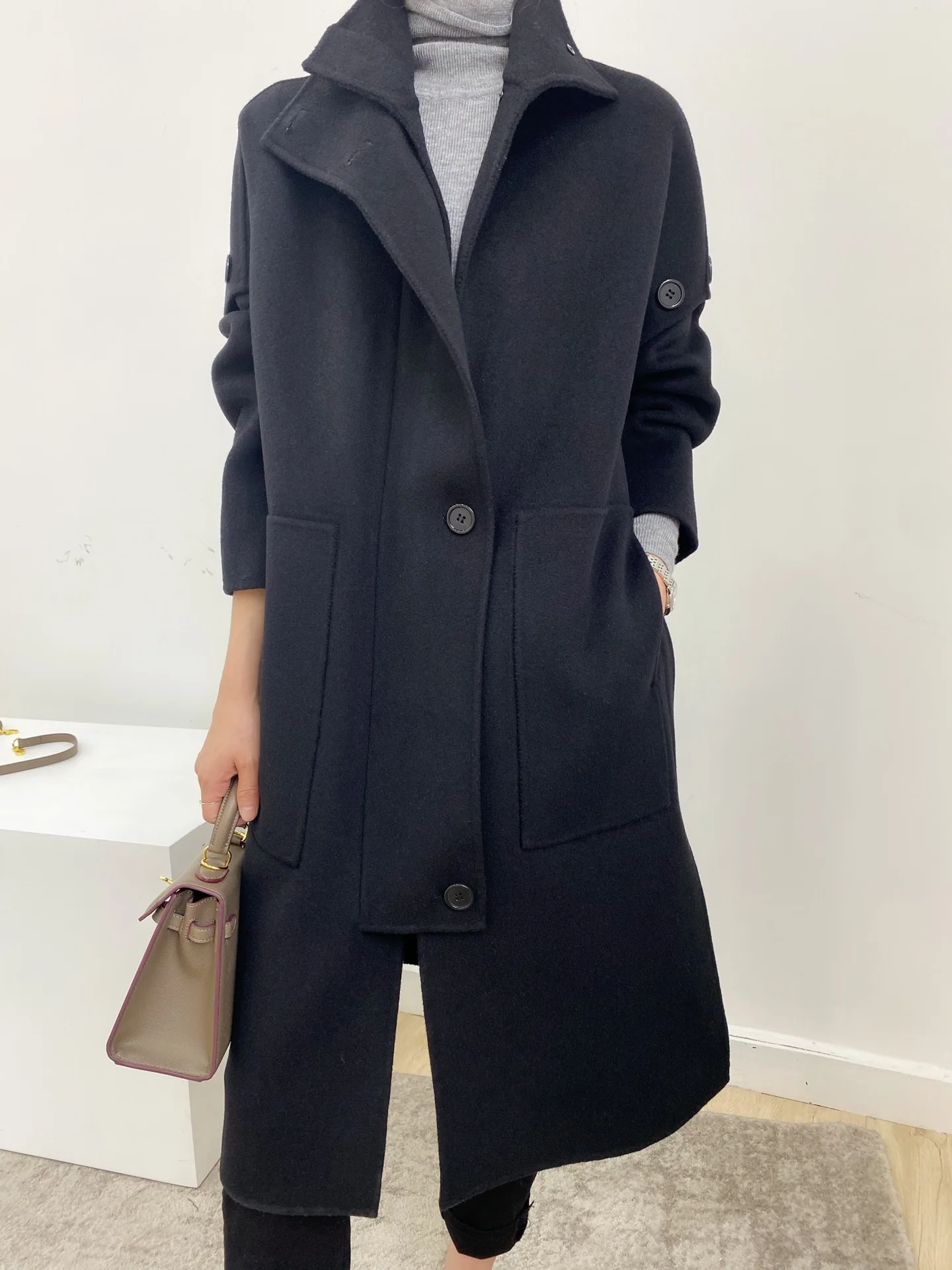 2023 Max cashmere coat for women in the autumn and winter of medium length double-sided wool coat handmade high-end nightgown