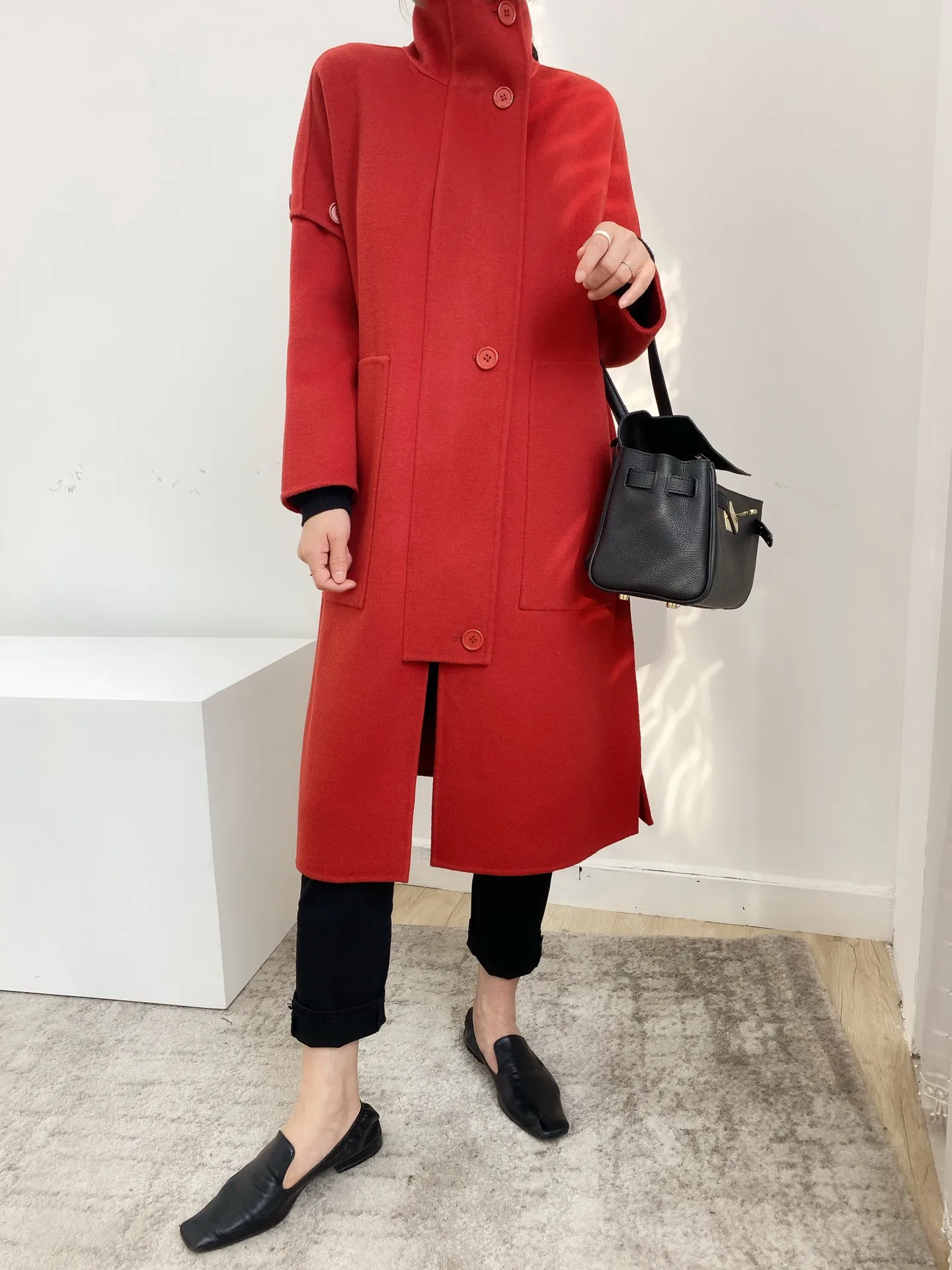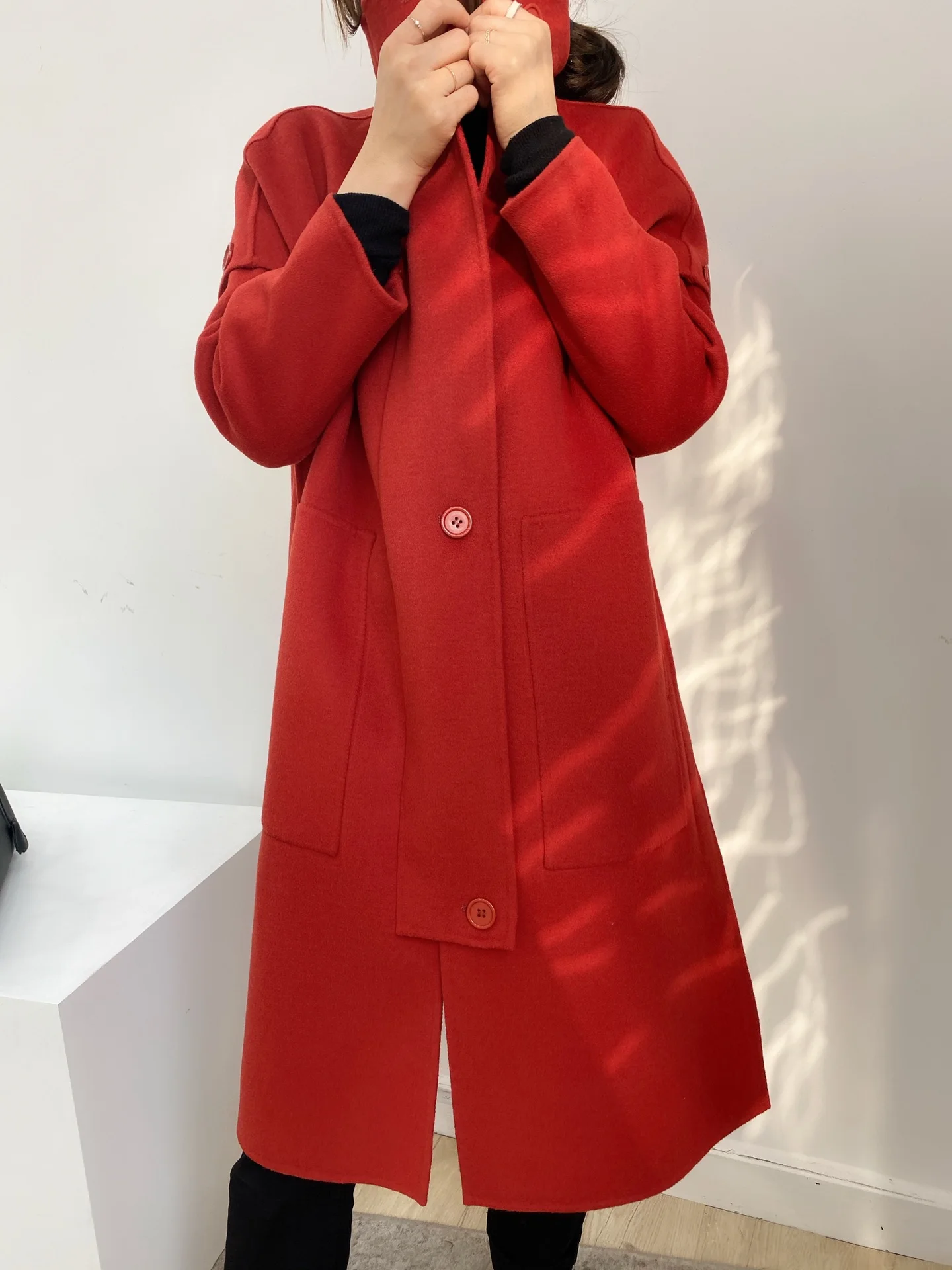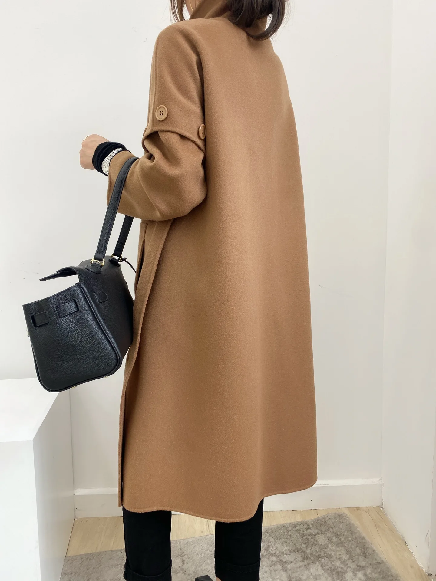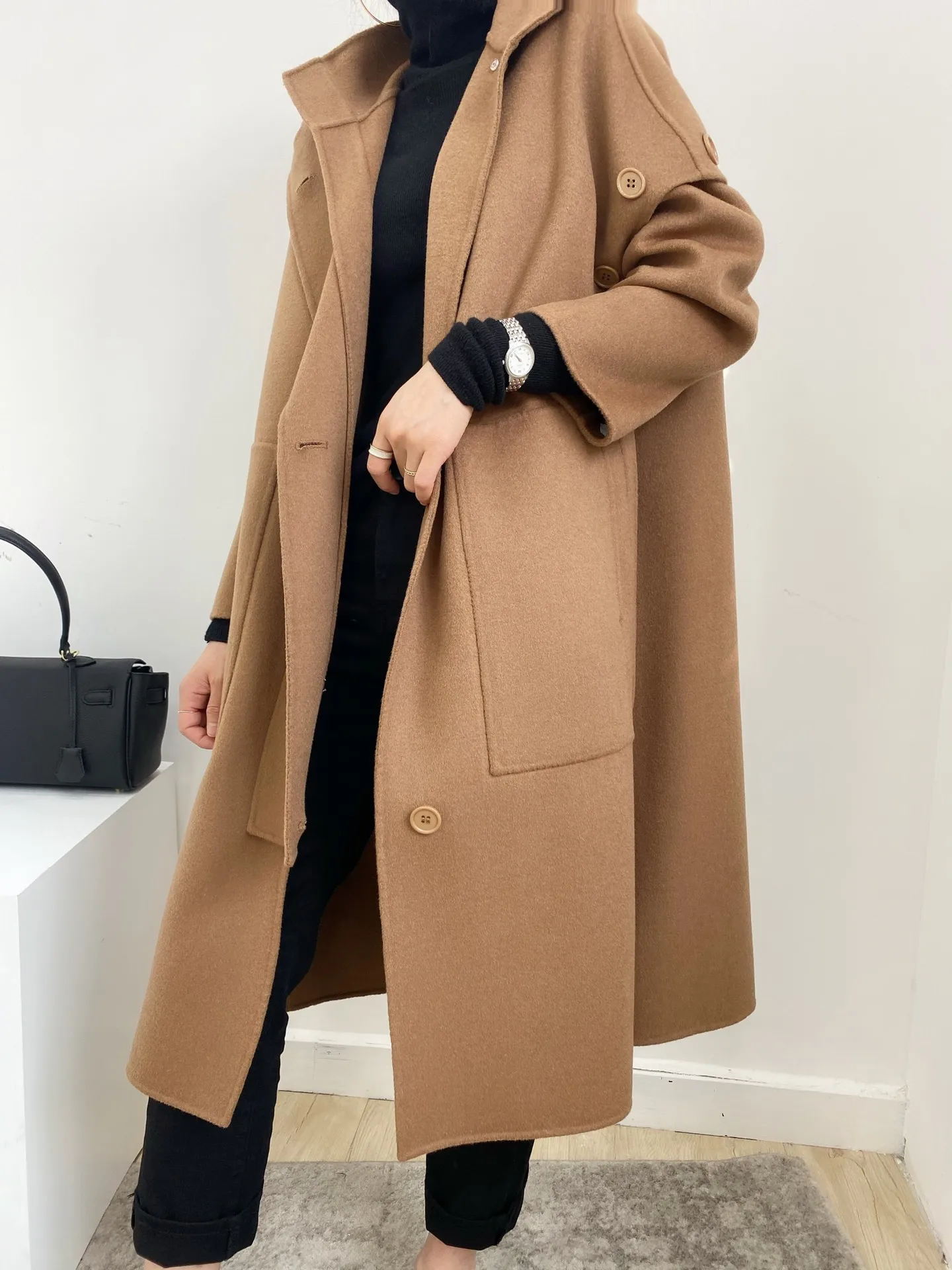 2023 Max cashmere coat for women in the autumn and winter of medium length double-sided wool coat handmade high-end nightgown