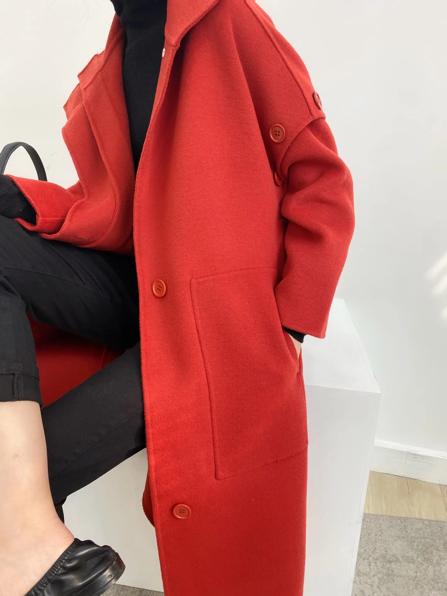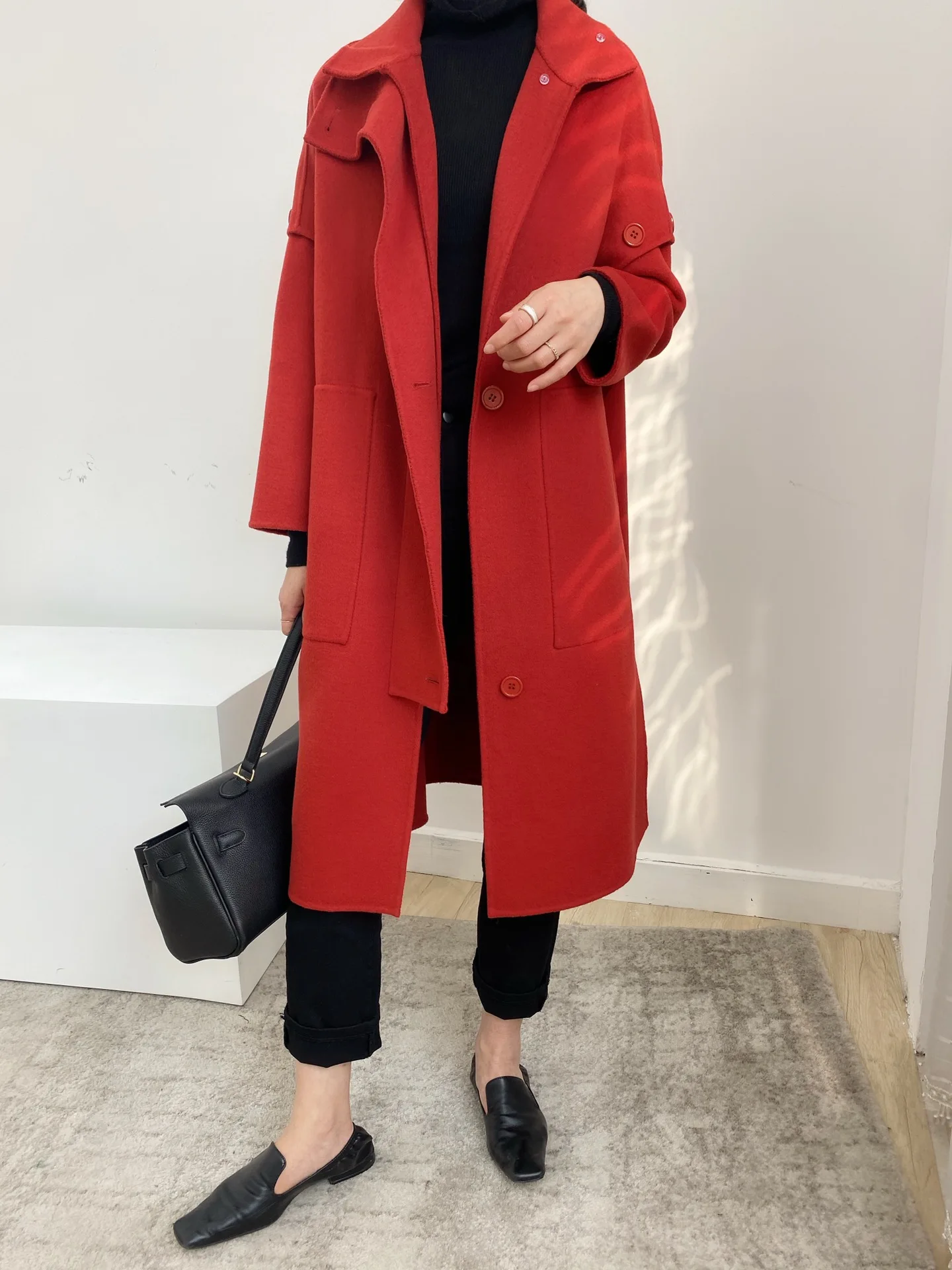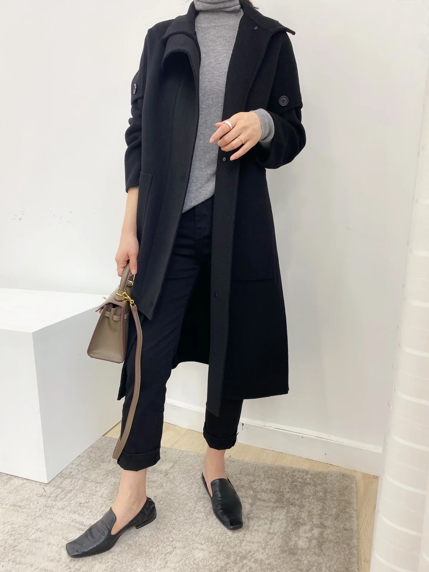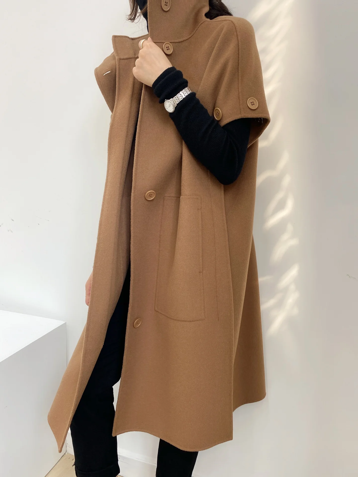 2023 Max cashmere coat for women in the autumn and winter of medium length double-sided wool coat handmade high-end nightgown