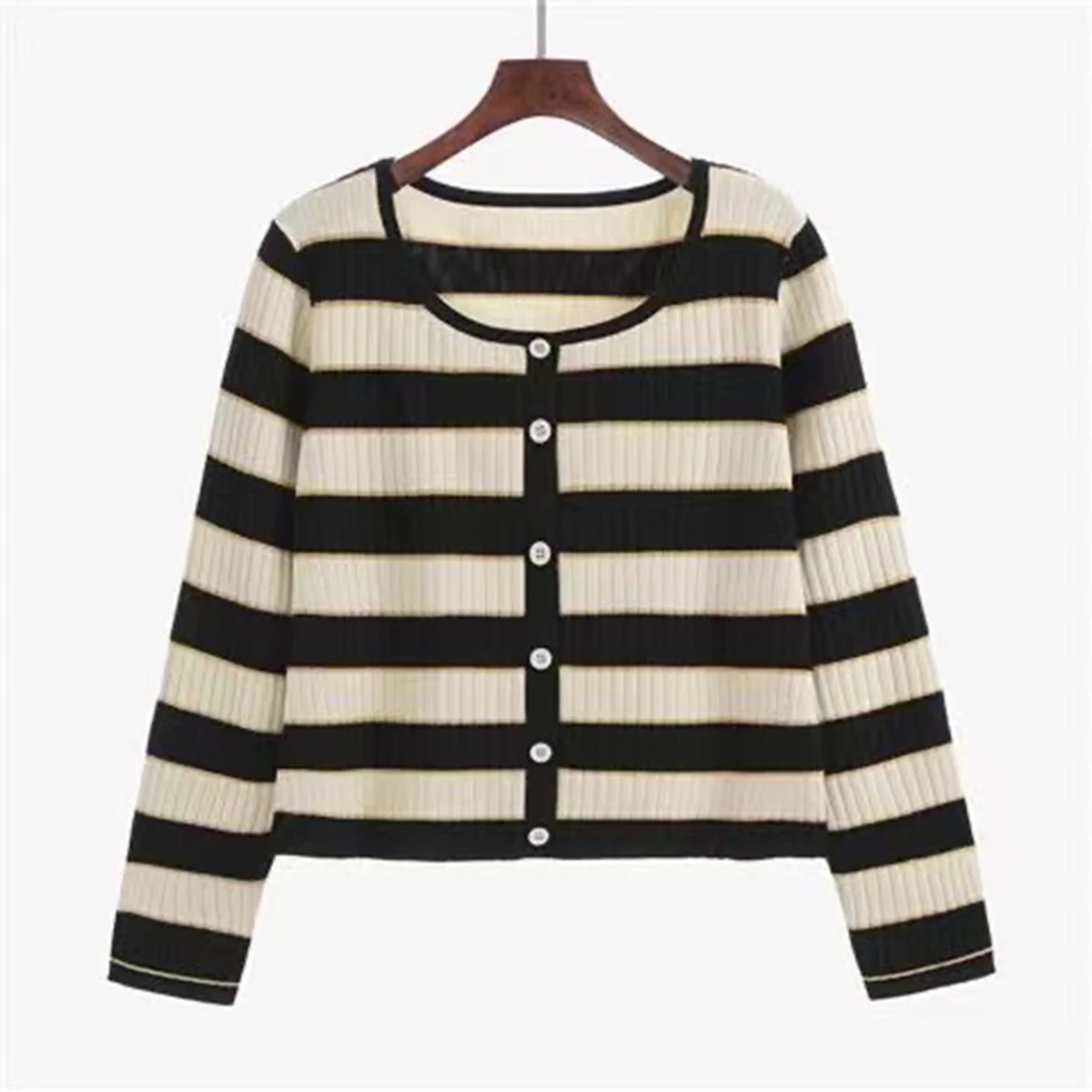 2023 New Autumn Women's Striped Knitted Cardigan Fashion Trend Coat
