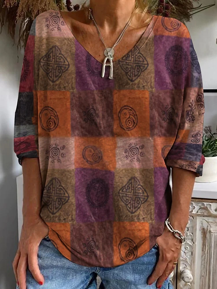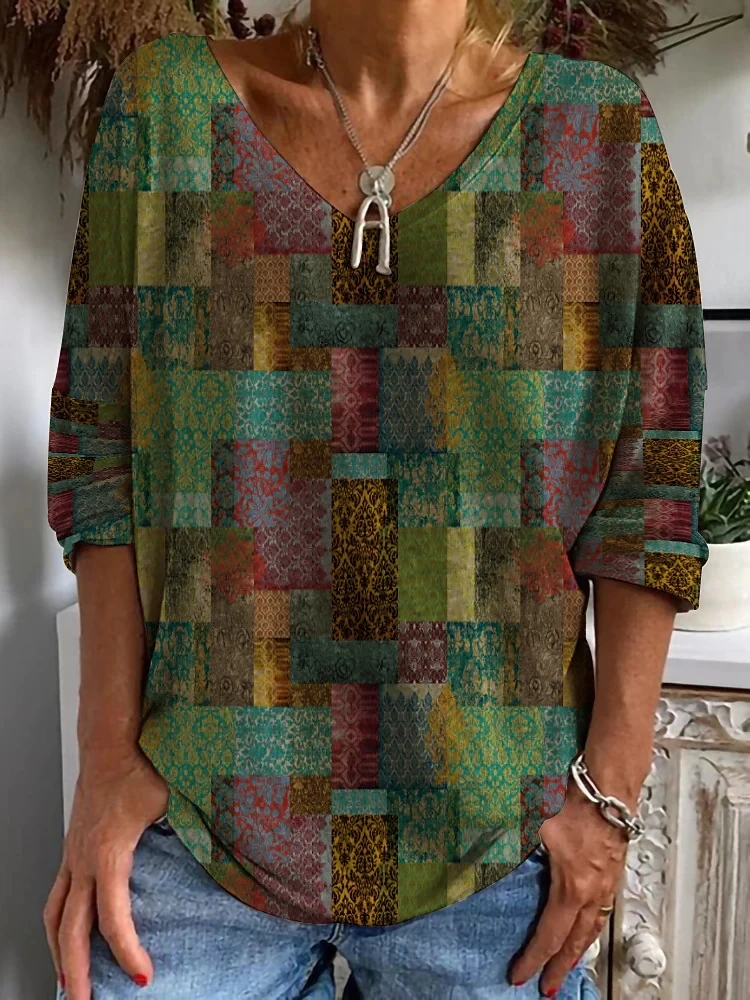 2023 New Summer Daily V-Neck T-shirt Loose Short Sleeve Women's Fashion Casual Pullover Retro 3D Print Top T-shirt