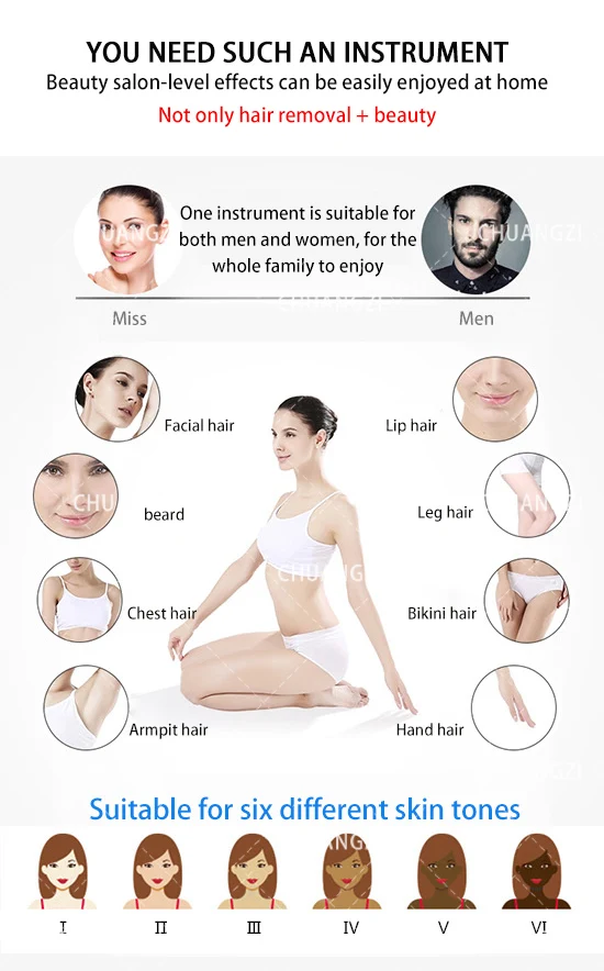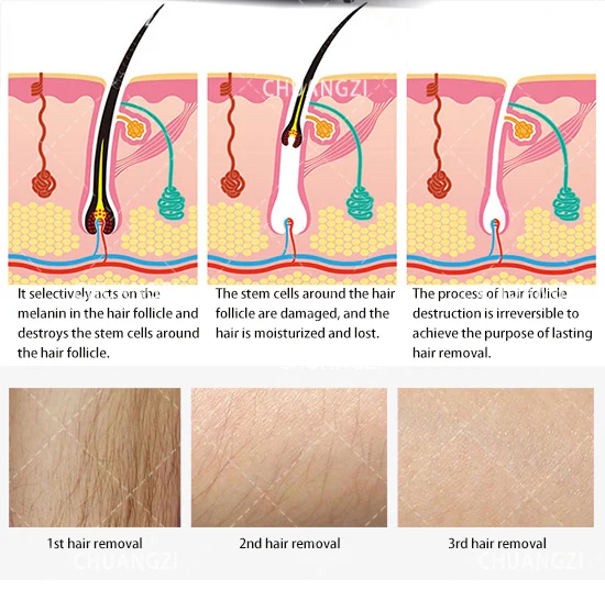 1. Safety: 808nm semiconductor laser, stable performance, long service life, timely intelligent microprocessor system control,