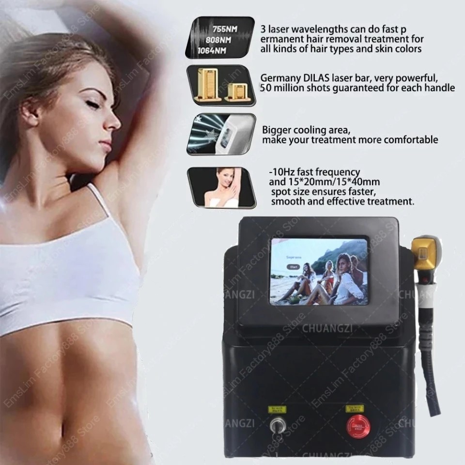 2023 Portable 2000W 808nm diode laser 755 808 1064nm wavelength freezing point painless permanent hair removal
