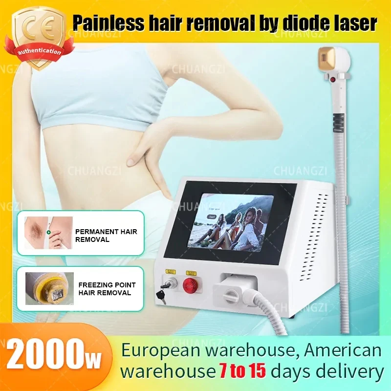 2023 Portable 2000W 808nm diode laser 755 808 1064nm wavelength freezing point painless permanent hair removal