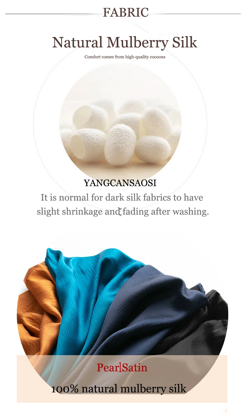 19mm 100% natural mulberry silk pearl satin fabric has a luster in the light. Fishtail skirt design, 4 colors available, can be matched at will.