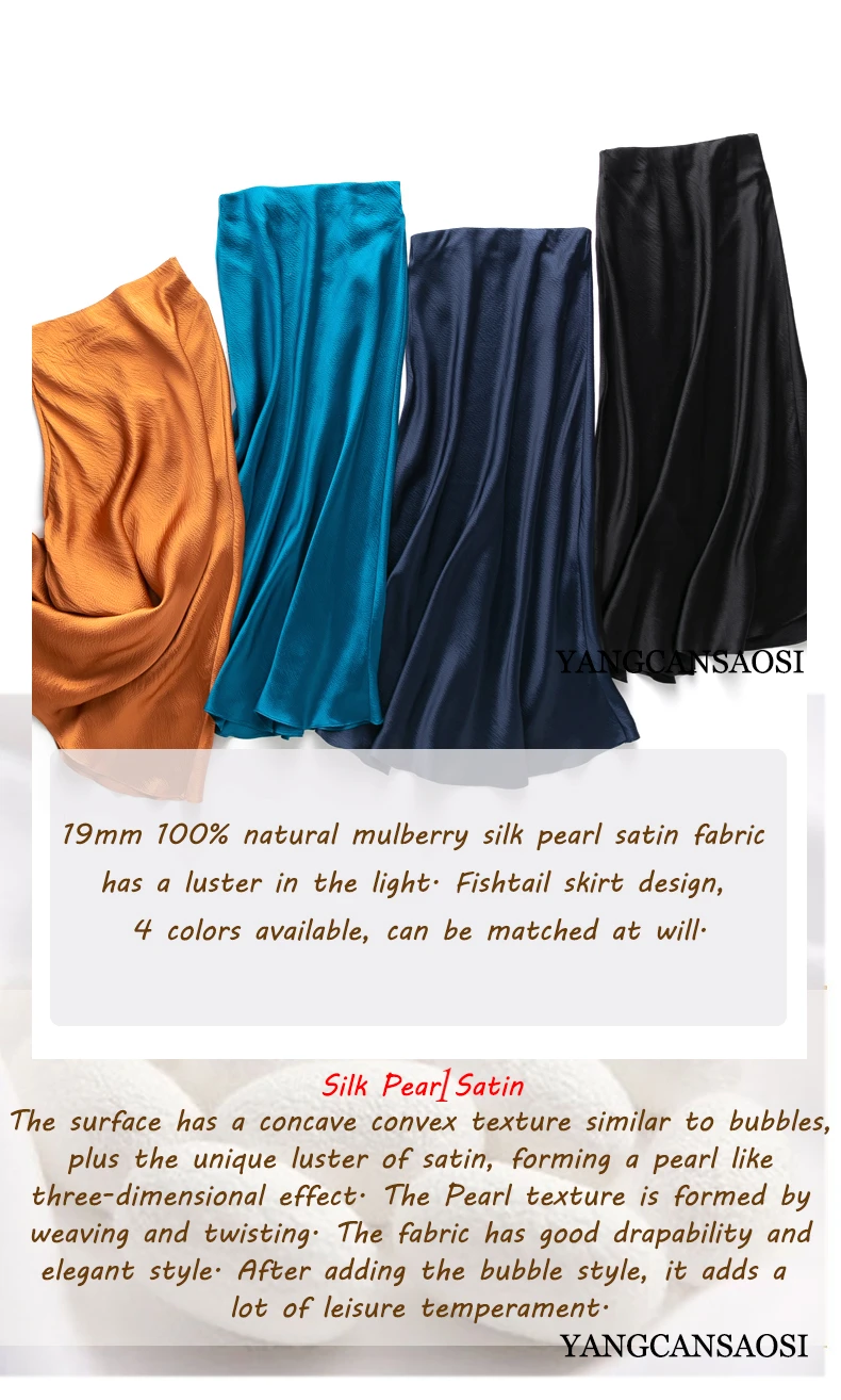 2023 Spring/Summer New Elegant Fashion 100% Natural Silk Pearl Satin Wrapped Hip High Waist Fishtail Skirt