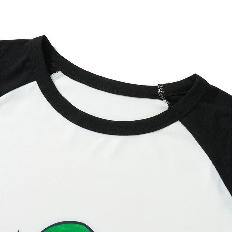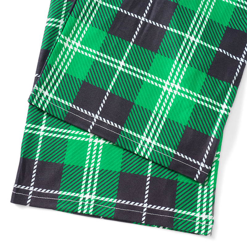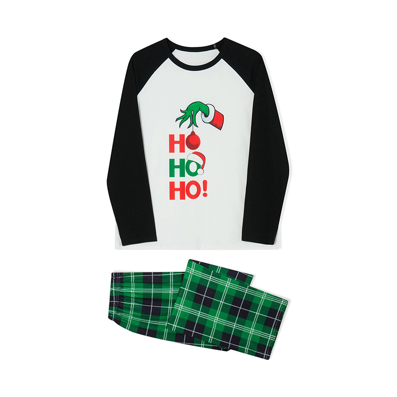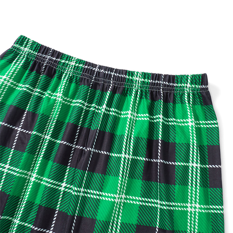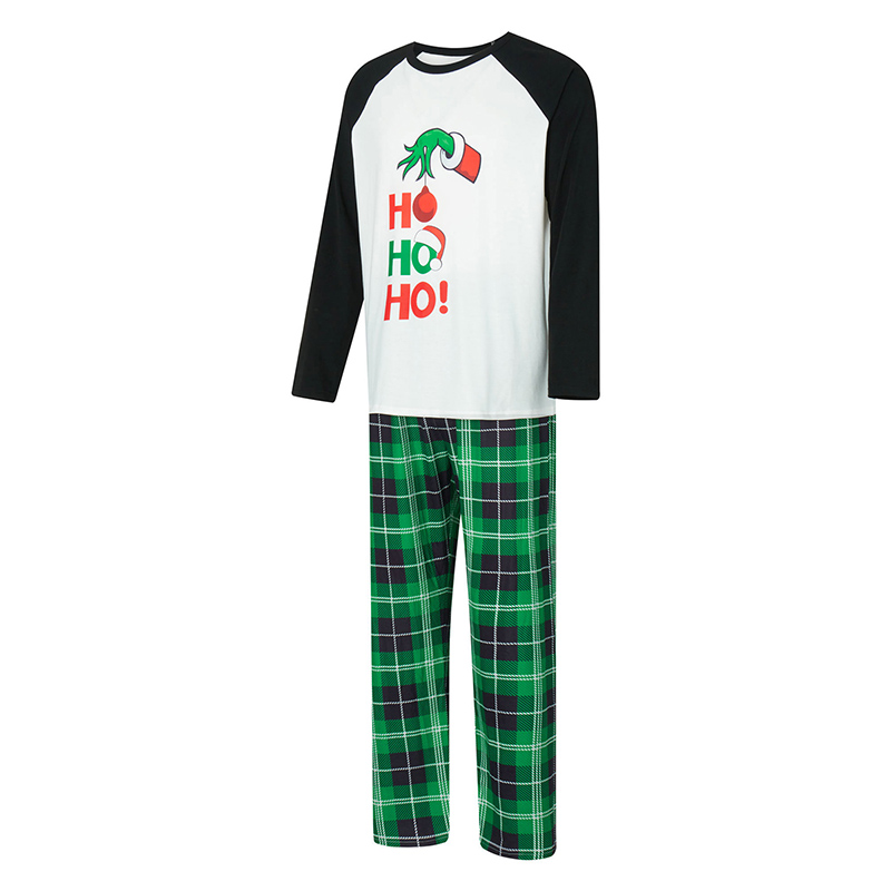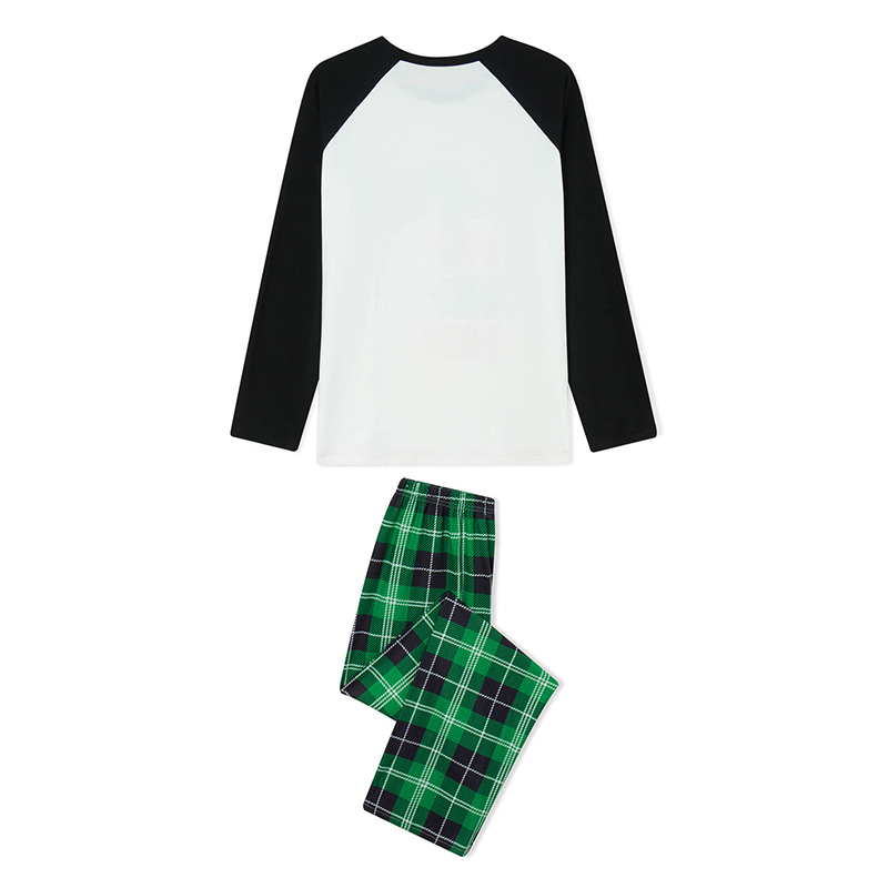 Family pajamas matching set, cartoon print, round neck, raglan long sleeves, pajama top. The pants feature plaid print and elastic waist for a comfortable fit for family portraits and everyday wear.