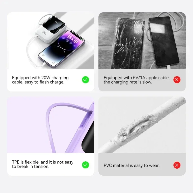 Eingebautes Kabel (Typ C-Kabel/Micro-USB-Kabel/USB-Kabel/für iPhone-Kabel)