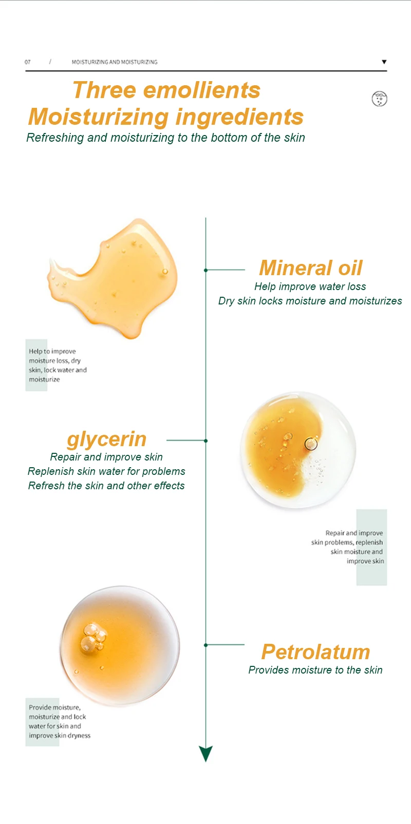 Contains 30% high concentration of AHA (fruit acid), which can weaken the adhesion of the cuticle of the epidermis, thereby exfoliating the accumulated aging cutin, and making the skin smooth and smooth. Penetrates into the dermis layer, promotes cells to stimulate collagen growth, brightens skin tone while lightening acne marks