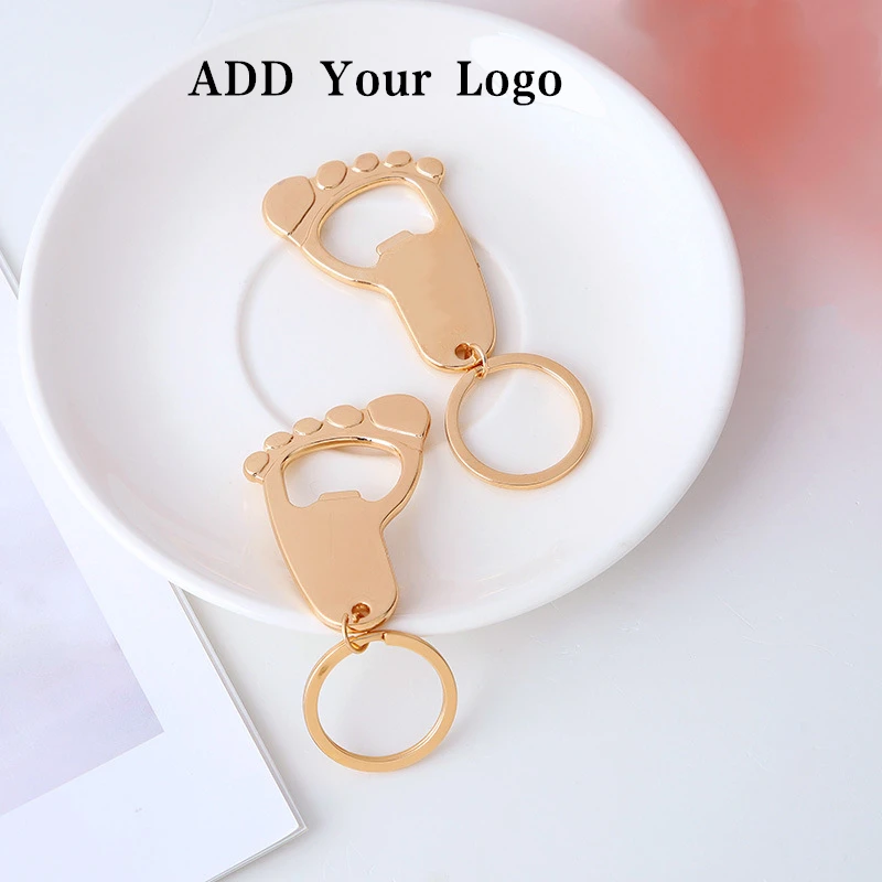 20pcs Personalized Baby Foot Shaped Keychain Bottle Opener Baby Shower Favor Baptism Celebration Party Souvenir Gifts For Guests