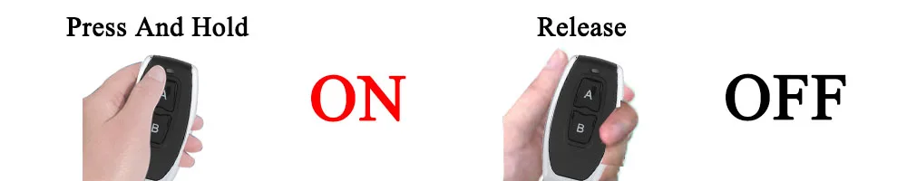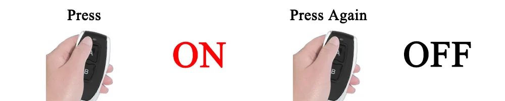 2. Press button “B”, this relay will turn off.(In this mode,you need at least 2buttons remote)