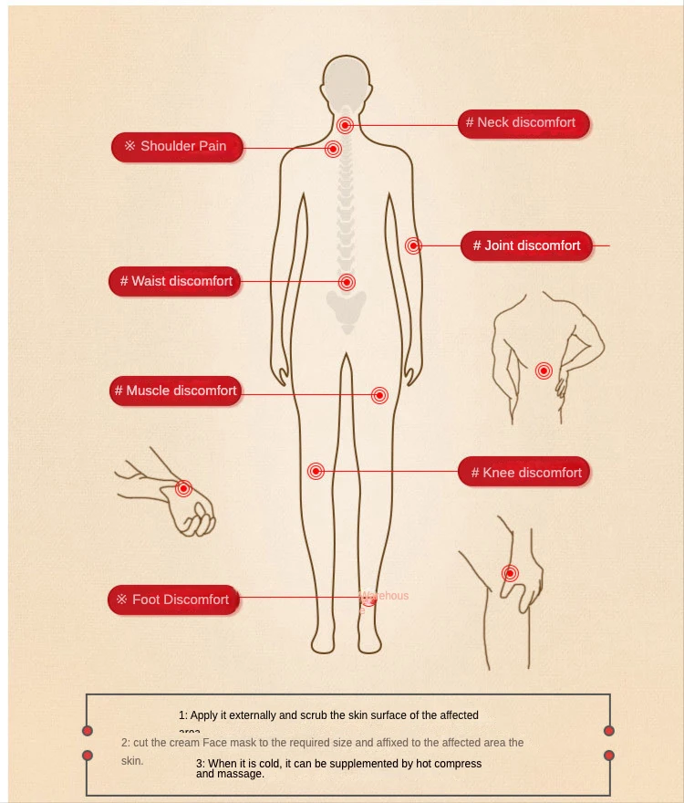 5. Only use one patch to the affected area, the patch can last up to 8-12 hours.