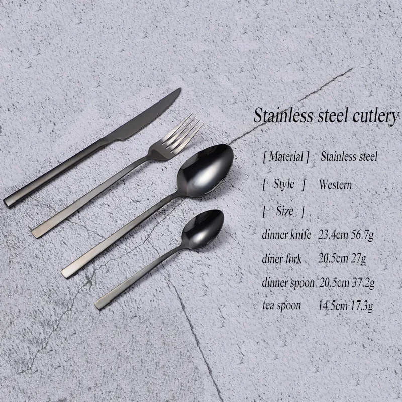 24pcs Black Stainless Steel Cutlery Set Kitchen Knives Forks Spoons Set Luxury Dinnerware Set Wedding Mirror Spoons Tableware