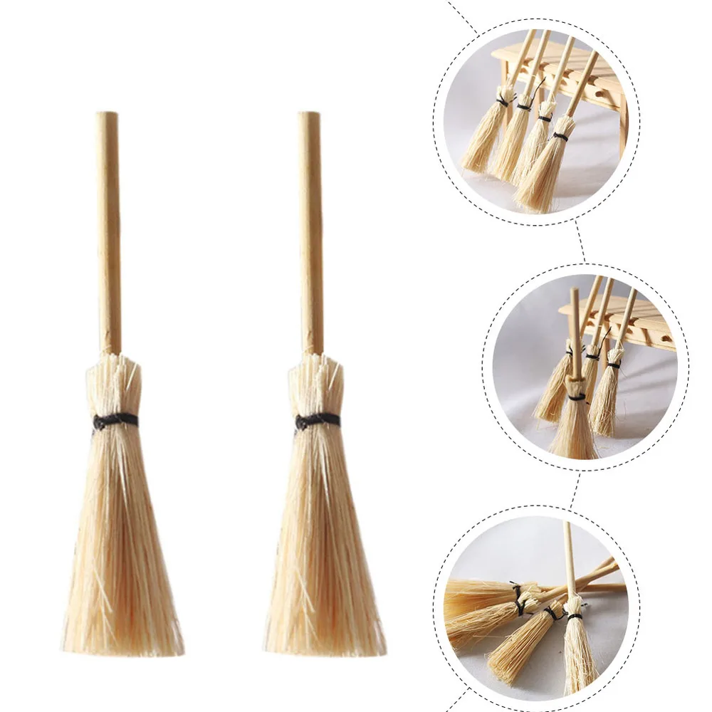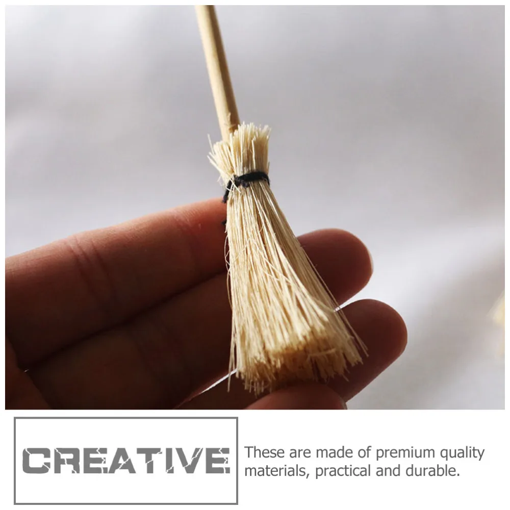 24Pcs Witch Mini Broom Red Rope Straw Brooms Hanging Decorations For Halloween Party Costume Witch Broom Dollhouse Accessories