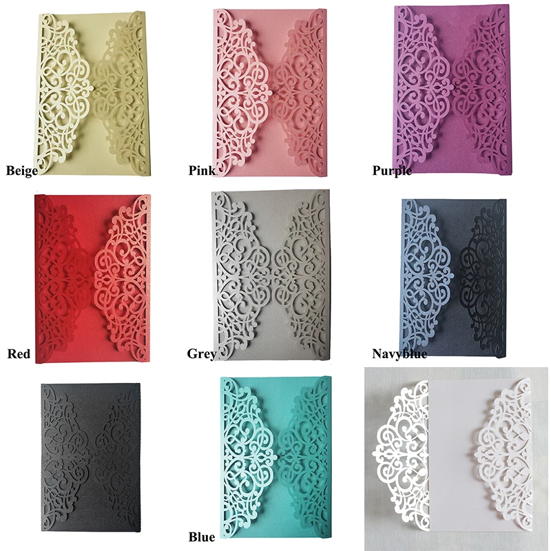 25pcs Wedding Invitations Cards Laser Cut Flower Multi Color Decor Gift Greeting Card RSVP Customize Party Favor Decoration