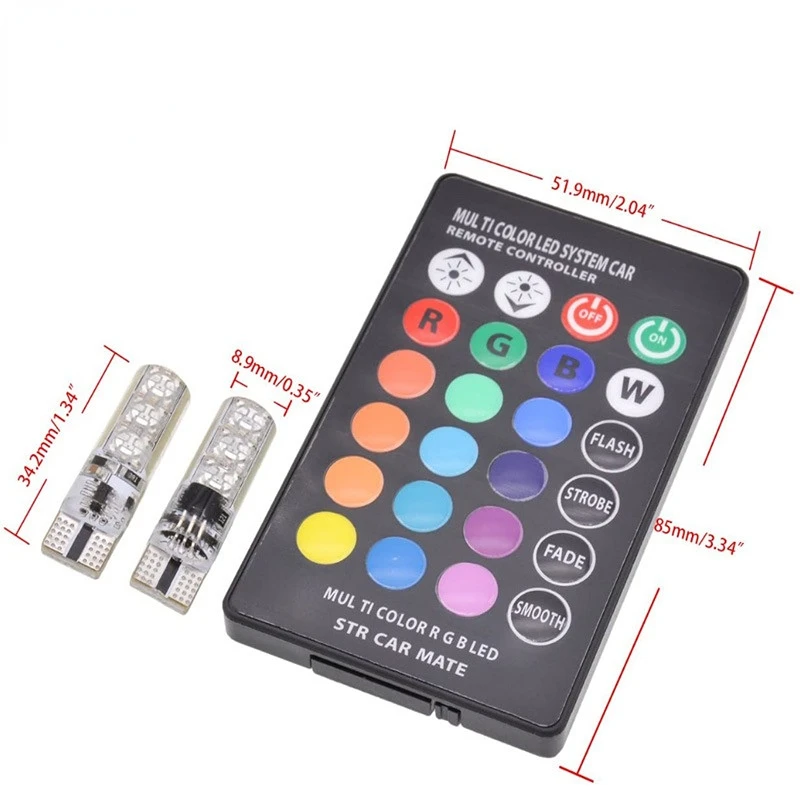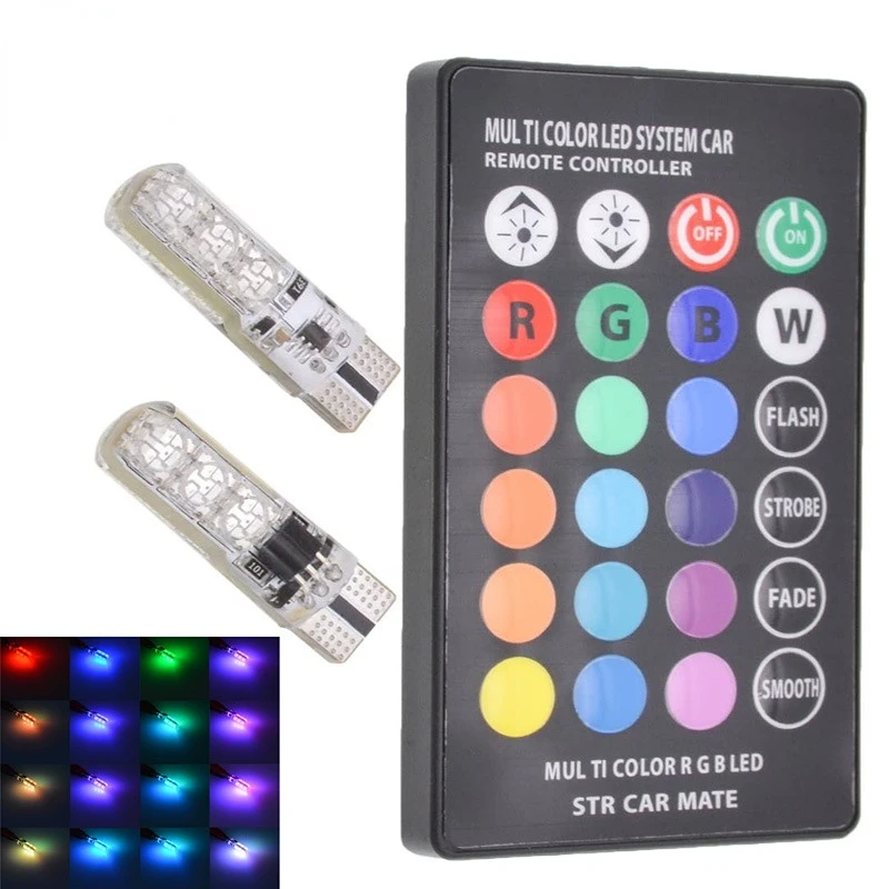 2PCS 18 SMD RGB T10 194 168 W5W Led Remote Controller 5050-6SMD RGB Car Dome Reading Light Automobiles Wedge Lamp LED Bulb Flash