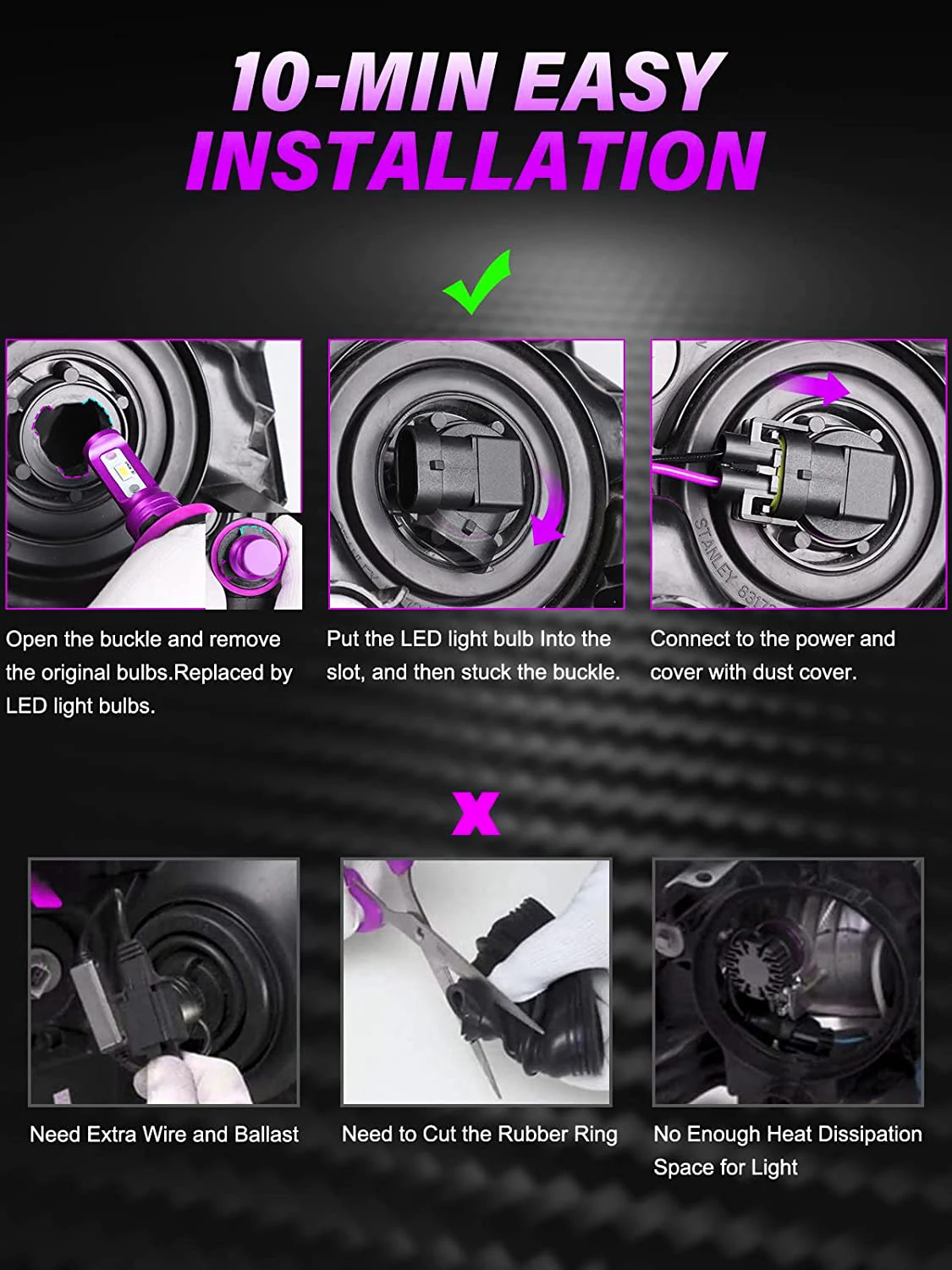 4) Easy Installation:1: 1 design as halogen bulbs, plug and play, no modification is required, Can be installed in minutes.