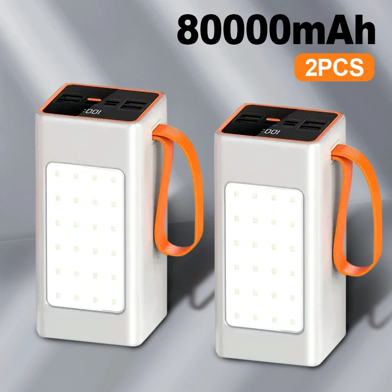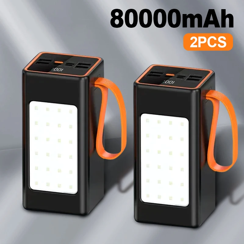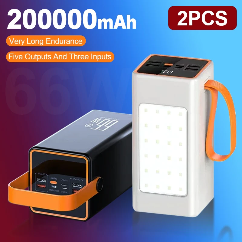 2PCS power banks 200000mAh High Capacity 66W Fast Charger Waterproof Rechargeable Battery For Mobile Phone Camping LED Light
