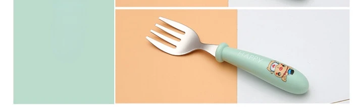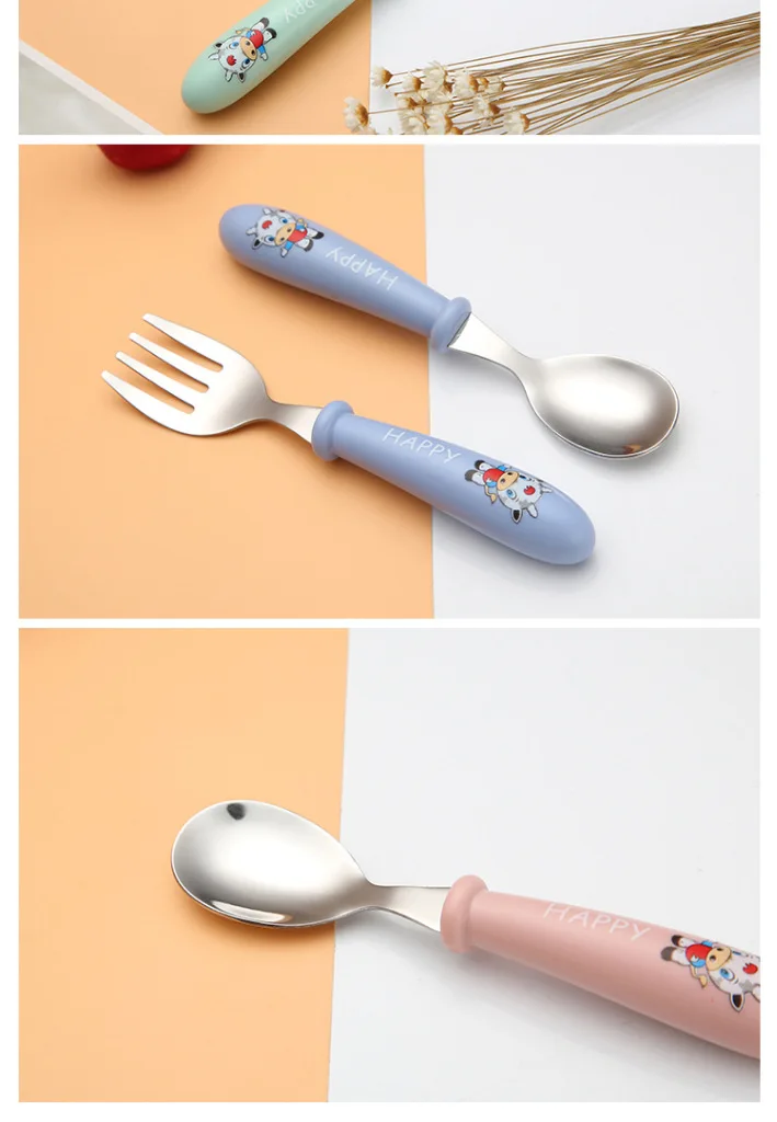 2Pcs/Set Baby Gadgets Tableware Set Kids 304 Stainless Steel Toddler Cutlery Cartoon Infant Food Feeding Spoon Fork Dinnerware