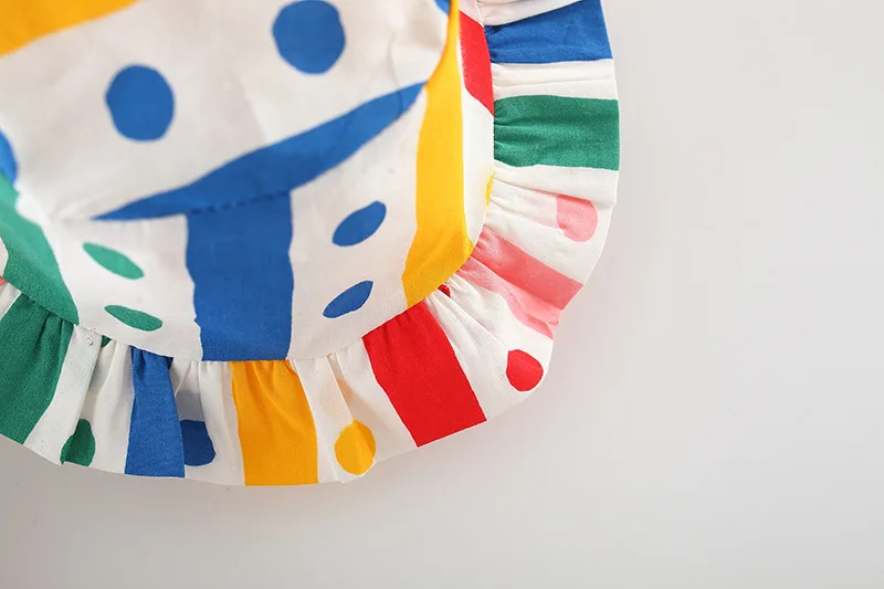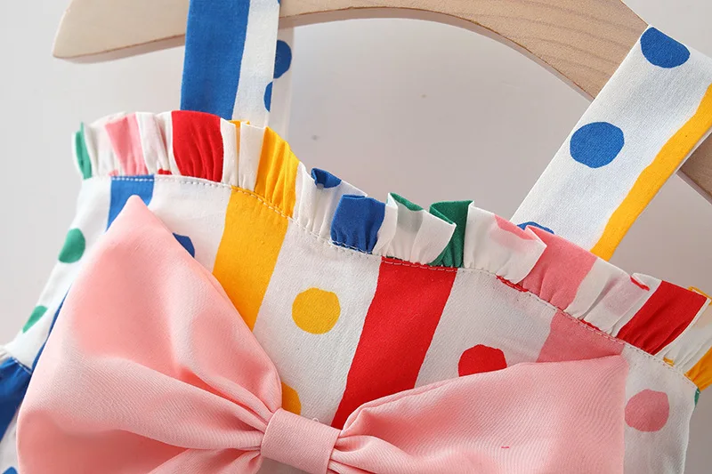 2Piece Set 2023 New Summer Baby Girl Dresses Korean Cute Bow Dot Sleeveless Cotton Beach Toddler Dress+Sunhat Kids Clothes BC311