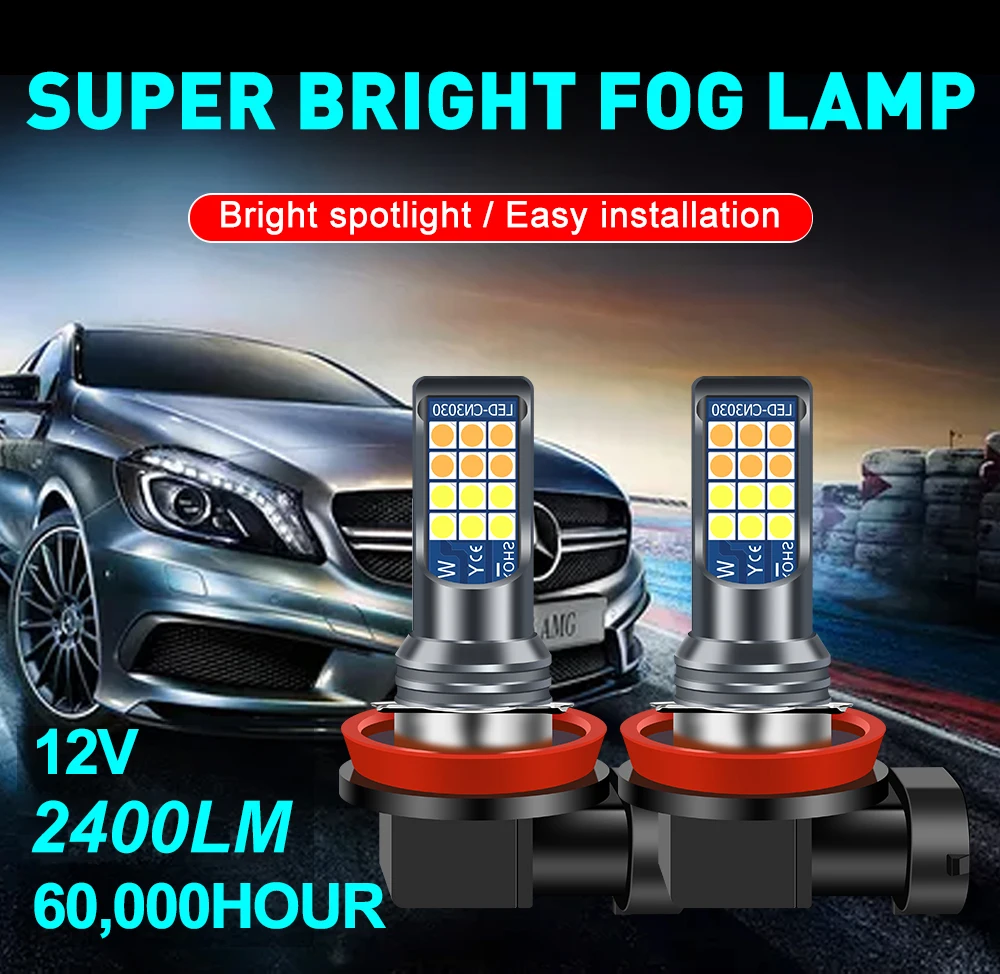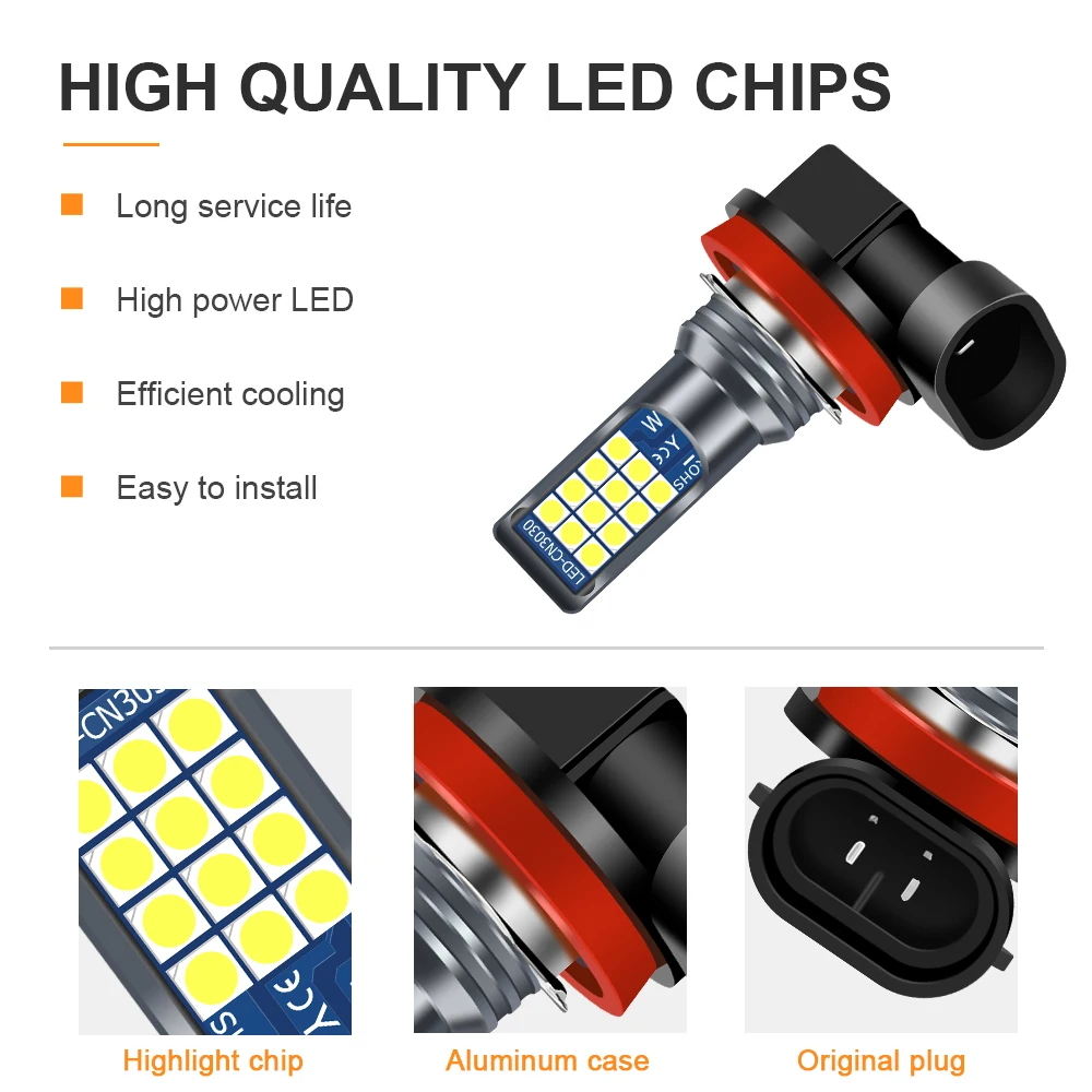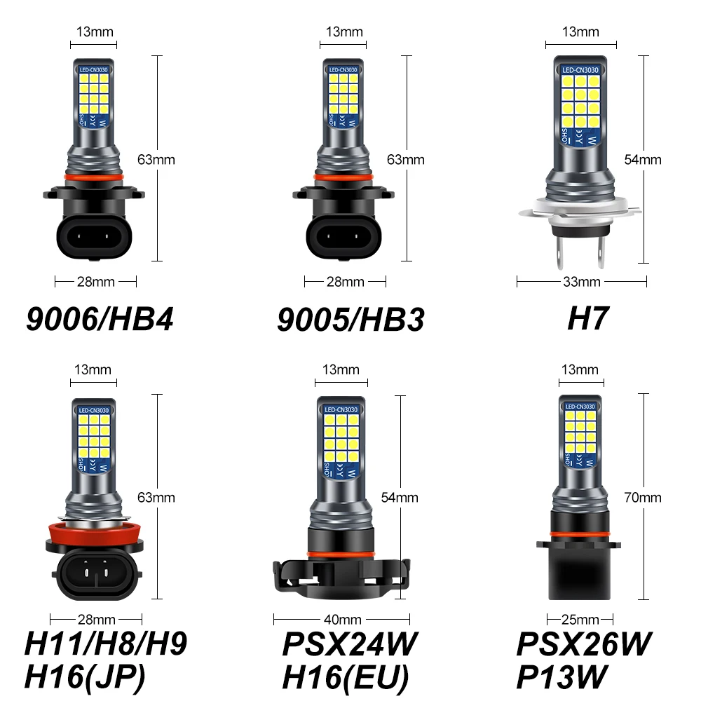 2x H11 H8 9006 HB4 HB3 H16 H10 PSX24W PSX26W P13W Fog Lights Bulb 2400LM 6000K White Car Driving Running Lamp Auto Leds Light