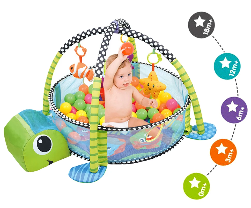 SET UP YOUR INFANT’S PLAY MAT IN SECONDS: Made of strong polyester, with non-toxic colors and a soft mesh, this playmats for babies and toddlers comes with eco-friendly toys and balls. Install it on the carpet or floor and let your kid safely play.
