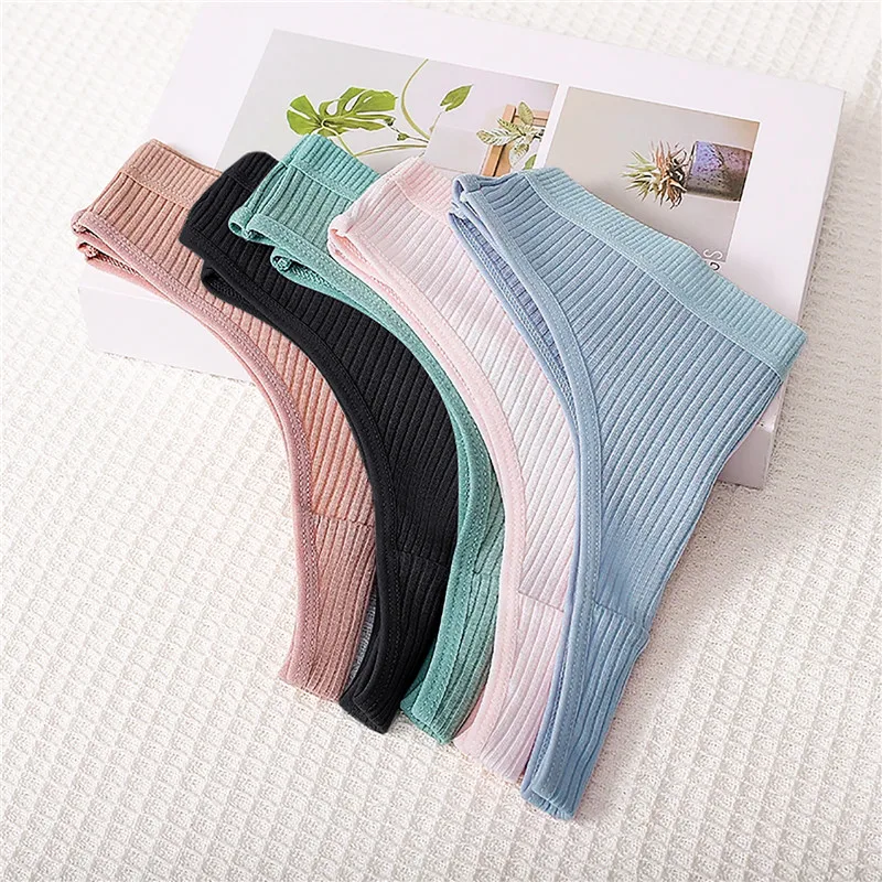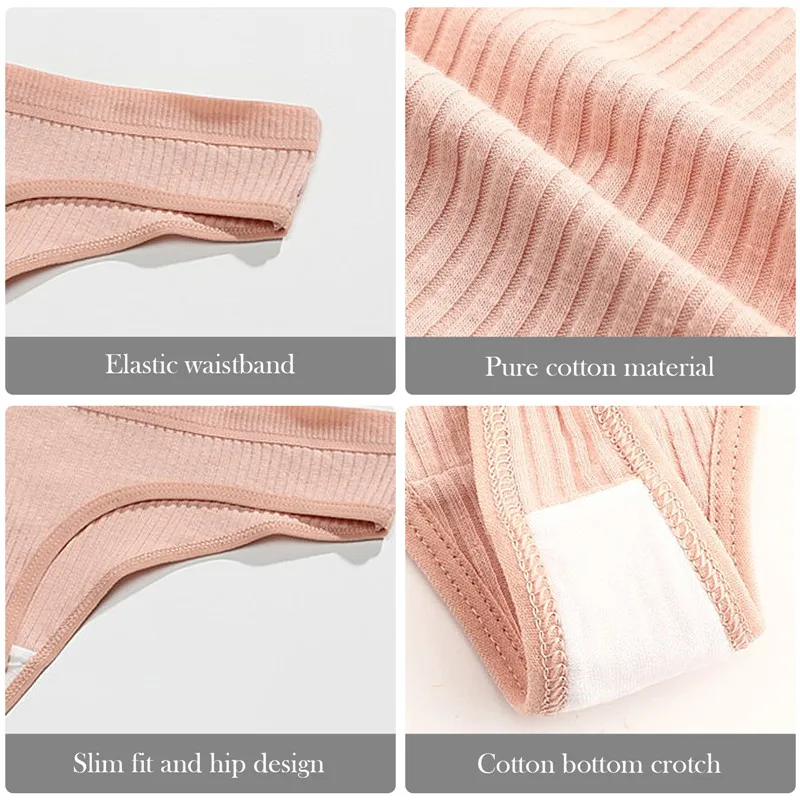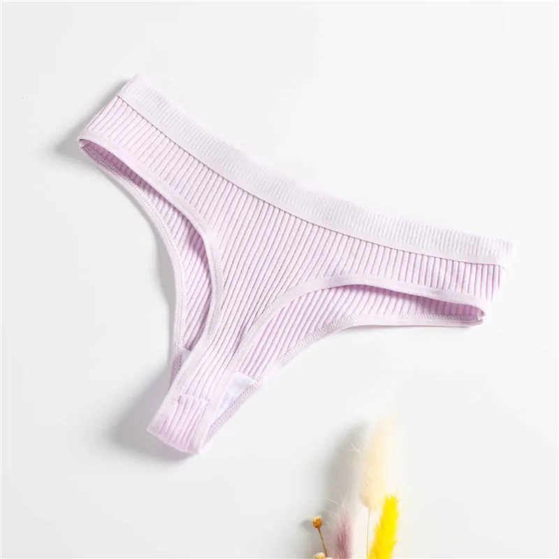 3 Pcs/Set Women'S Cotton Brazilian Panties Solid G-String Thongs Low Waist Ribbed Briefs Ladies Underpants Girls Panty Intimate