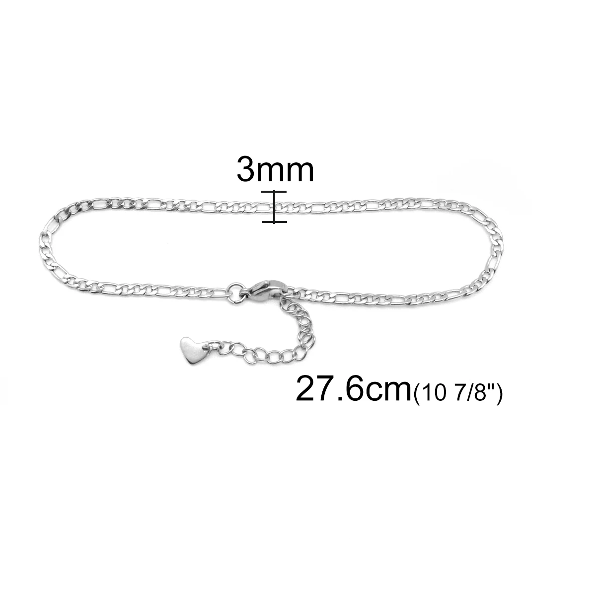 304 Stainless Steel Anklet For Women Men Silver Color Heart Chain Anklet Fashion Wedding Jewelry 2021 22.8cm(9") long, 1 Piece