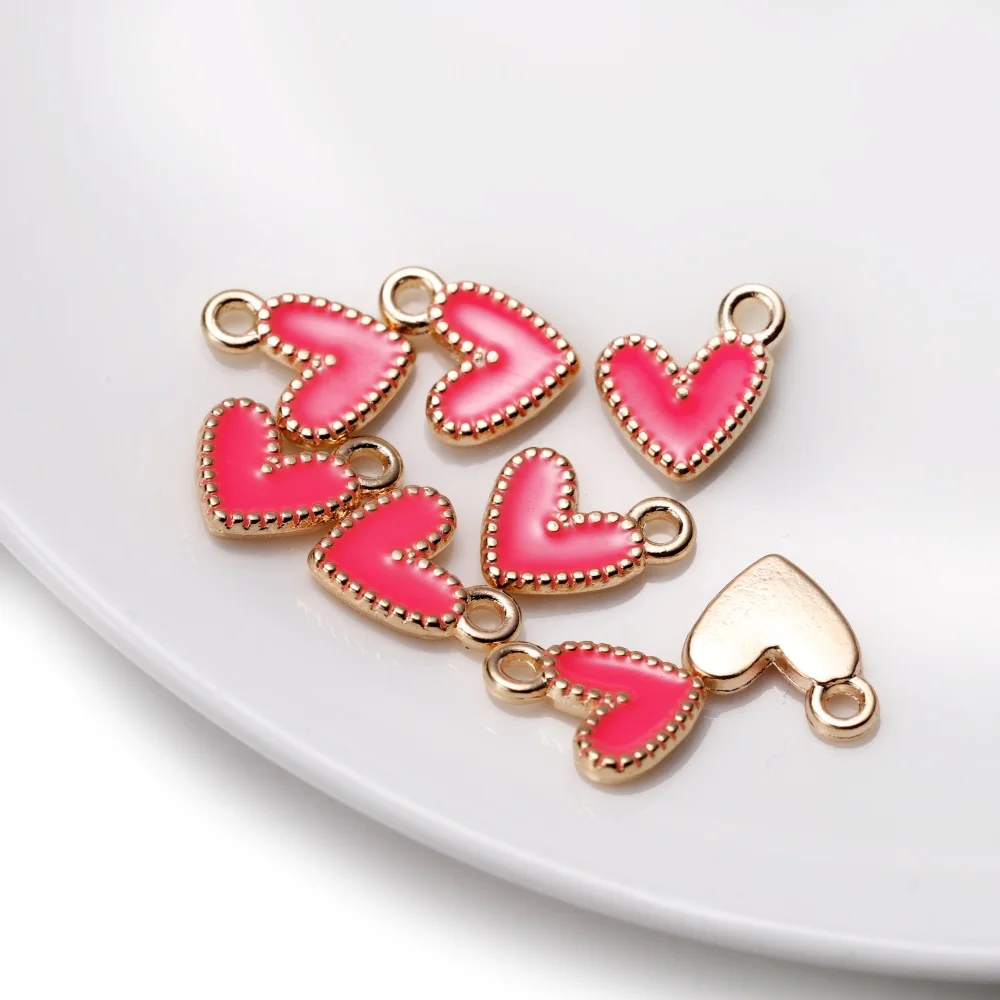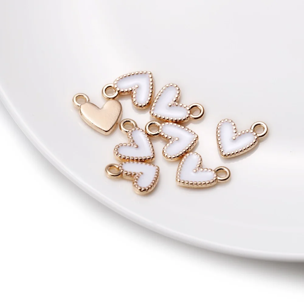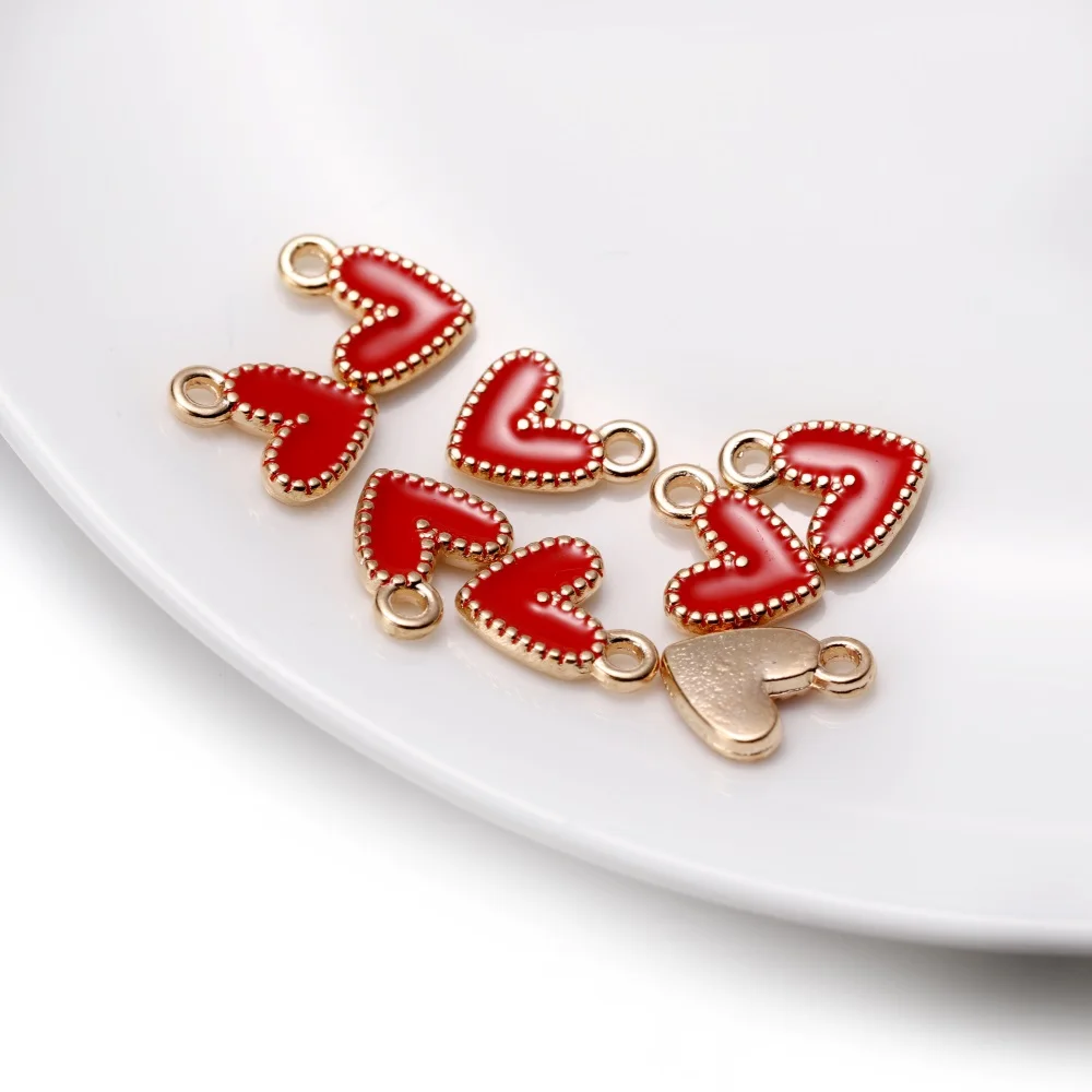 30Pcs/Lot 9*10mm Small Colorful Alloy Heart Charms Cute Love Pendant For DIY Bracelet Necklaces Jewelry Making Accessories
