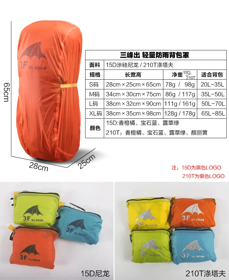 3F UL GEAR Rain Cover 20-85L Outdoor Mountaineering Backpack Mountaineering Dust Bag 15D 210T Silicon Coated Backpack Cover