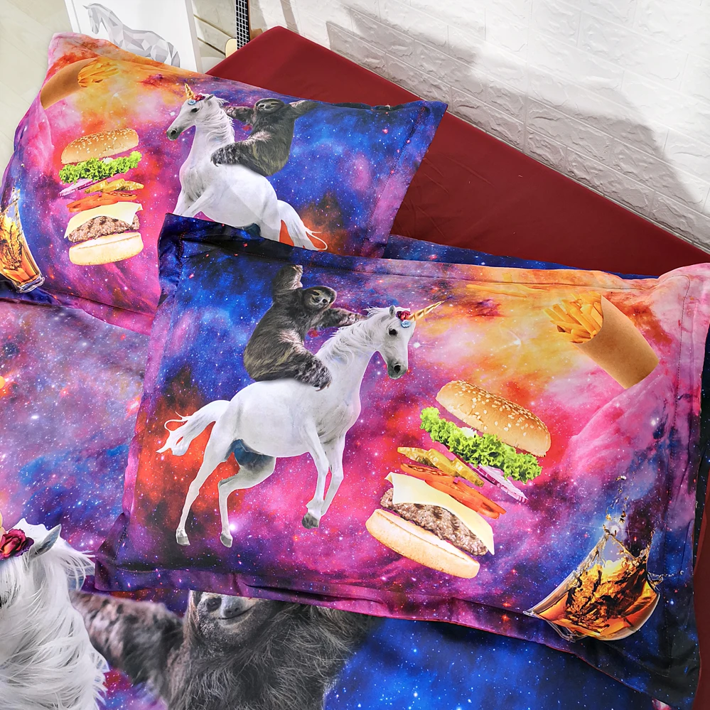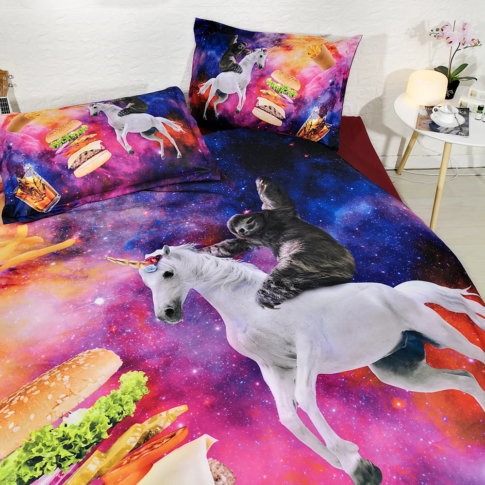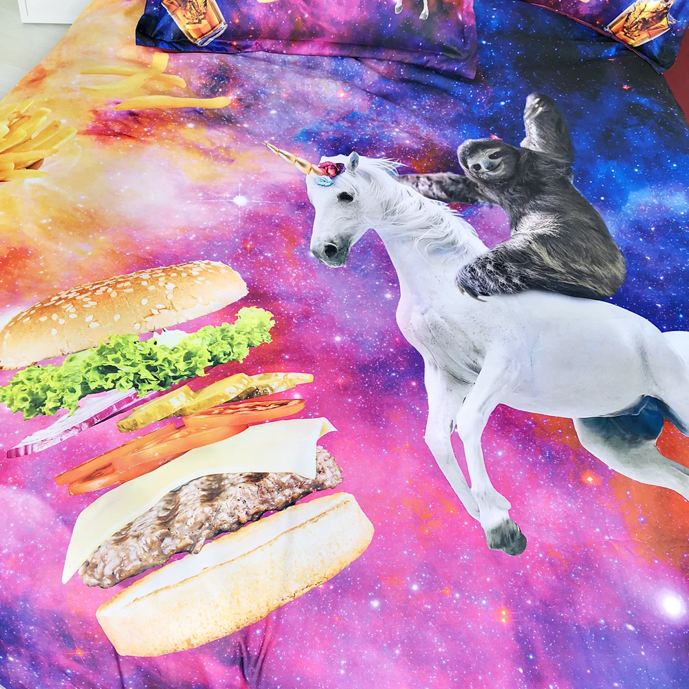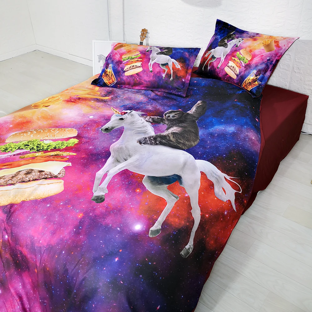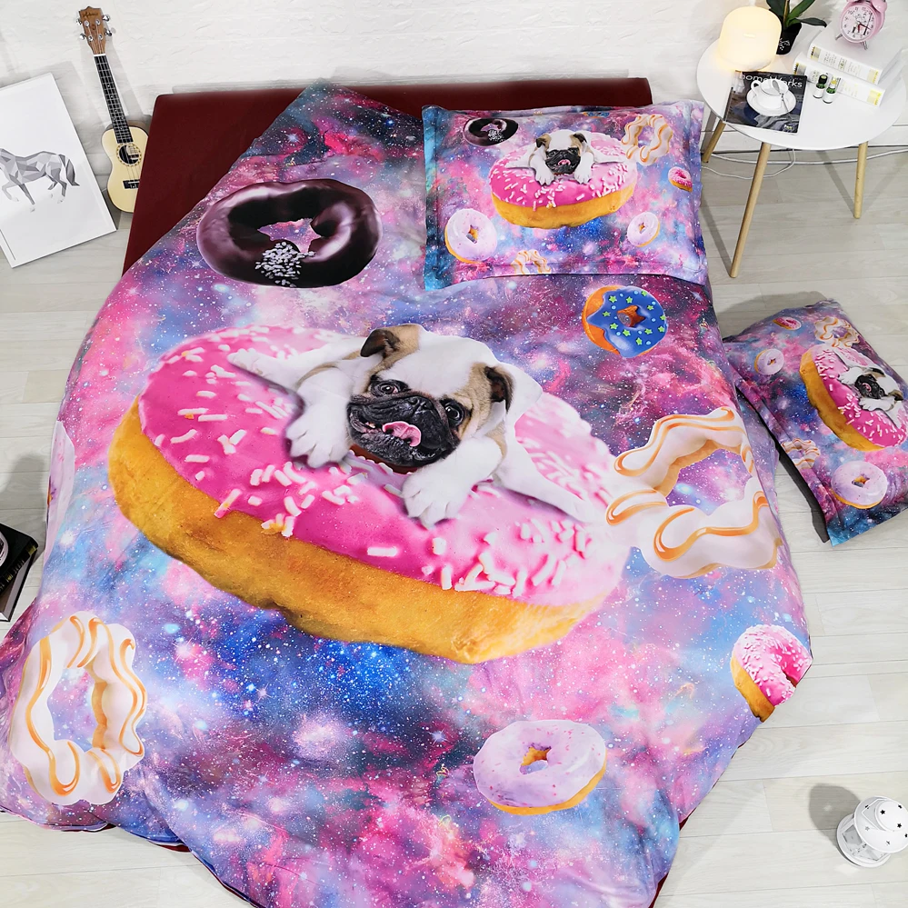 3pcs all kinds galaxy and animal bedding set Single Double Queen super king size quilt covers shark sloth bulldog linens duvet