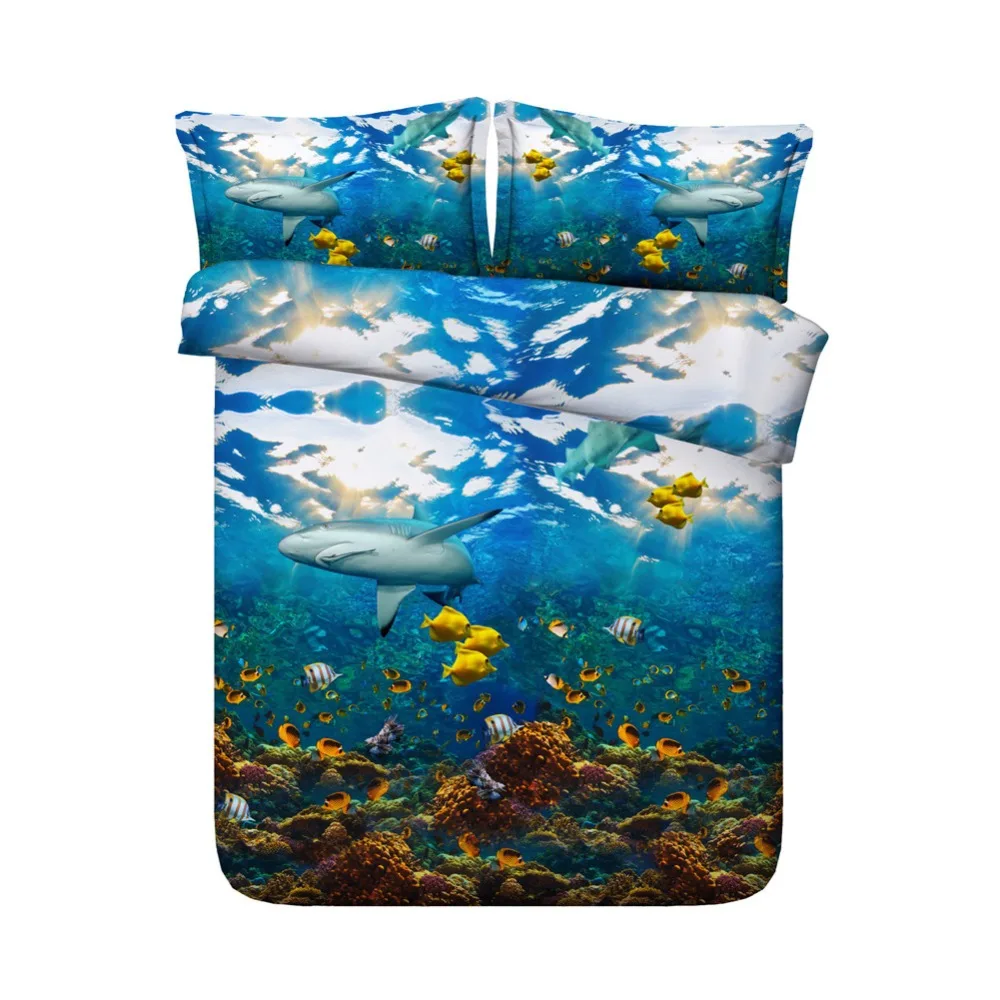 * Pattern: Face side of duvet cover and pillowcases with HD digital print, back side solid color fabric, no print.