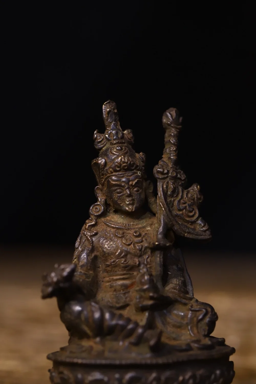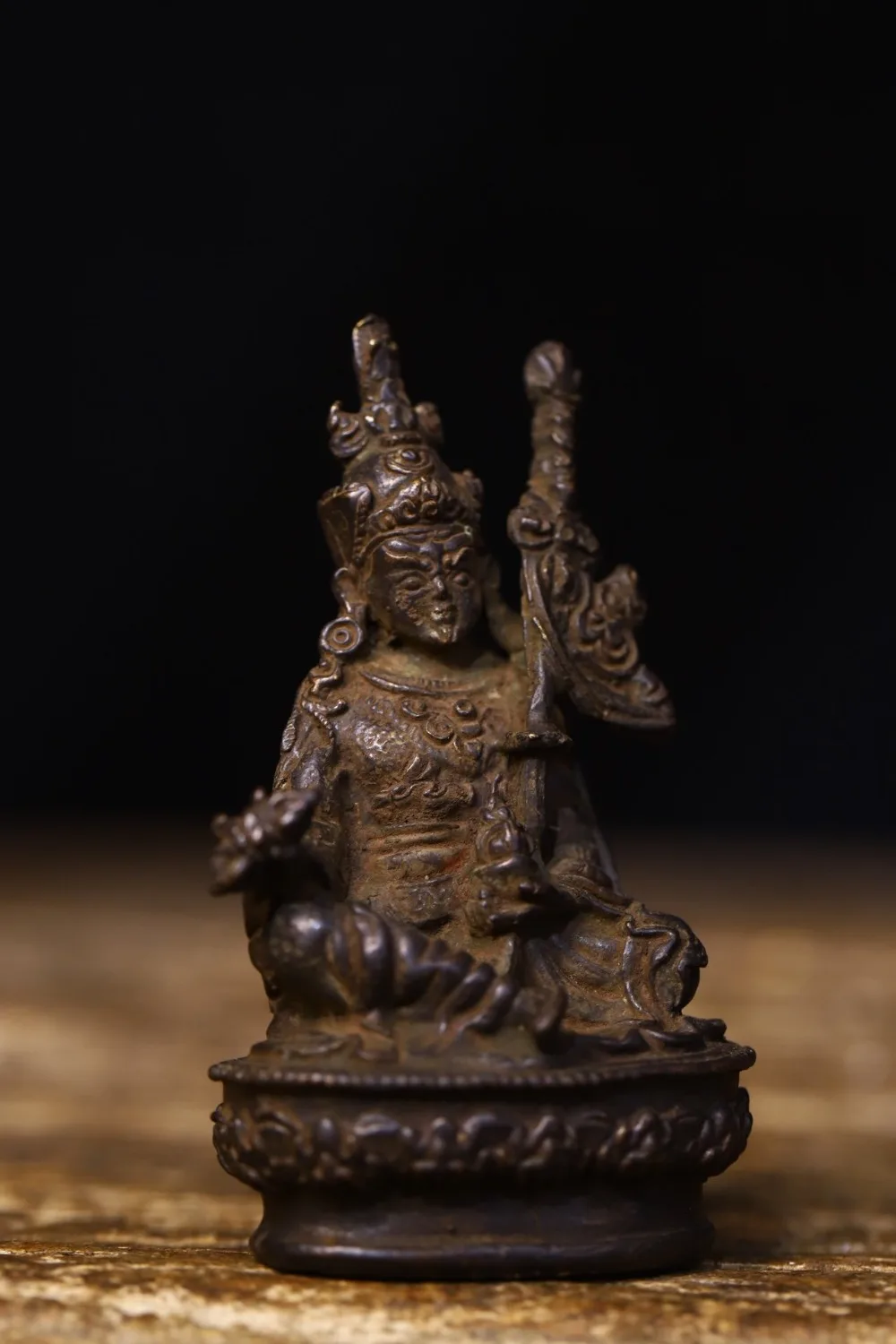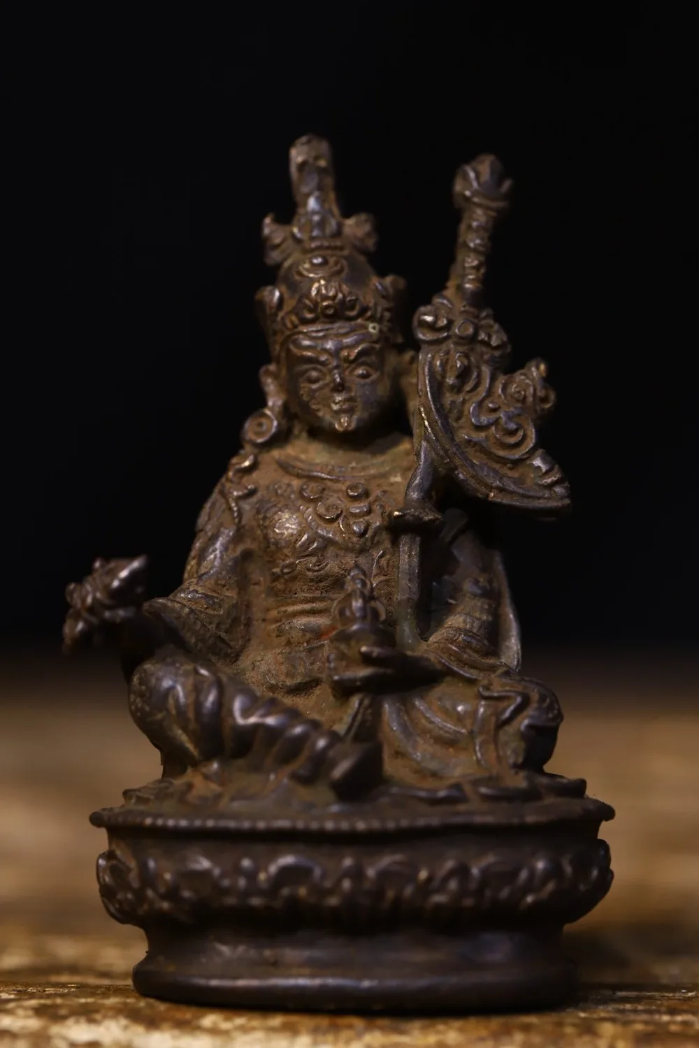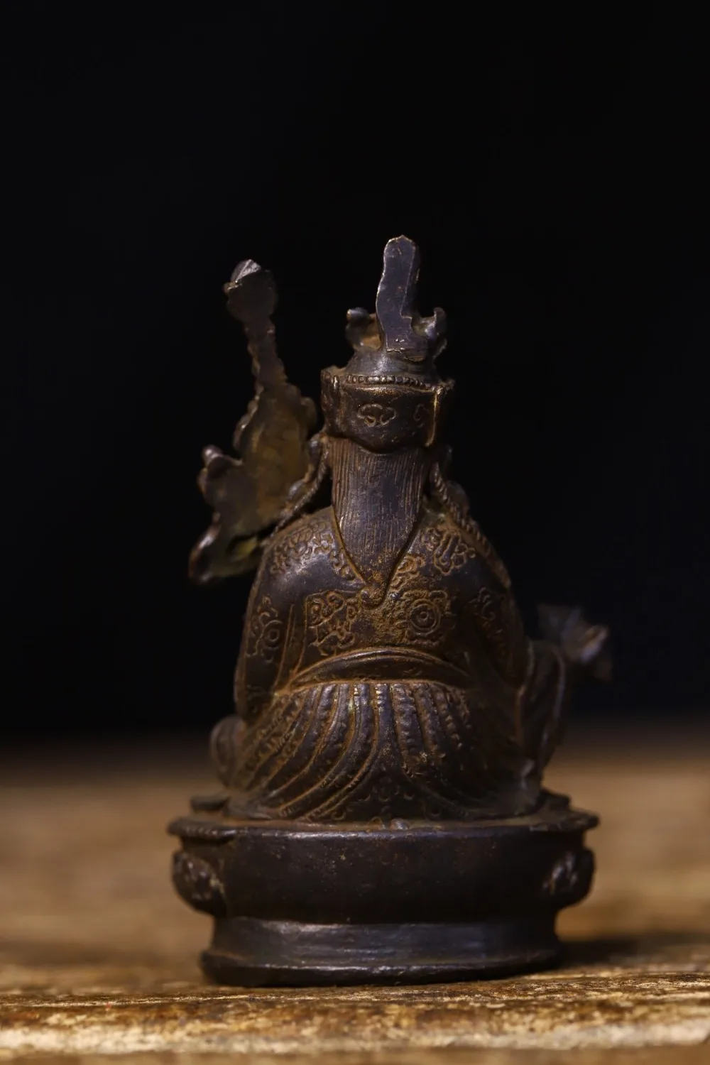 3"Tibet Temple Collection Old Bronze Guru Padmasambhava Buddha Statue Indian monk Guru Rinpoche Buddha Statue