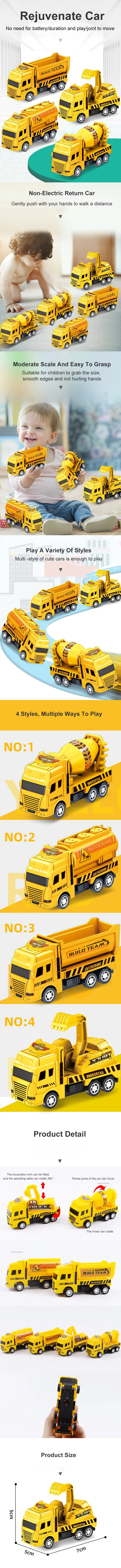 4. Set of Four: This set includes four different miniature engineering car models, providing children with multiple options for play and imaginative scenarios.