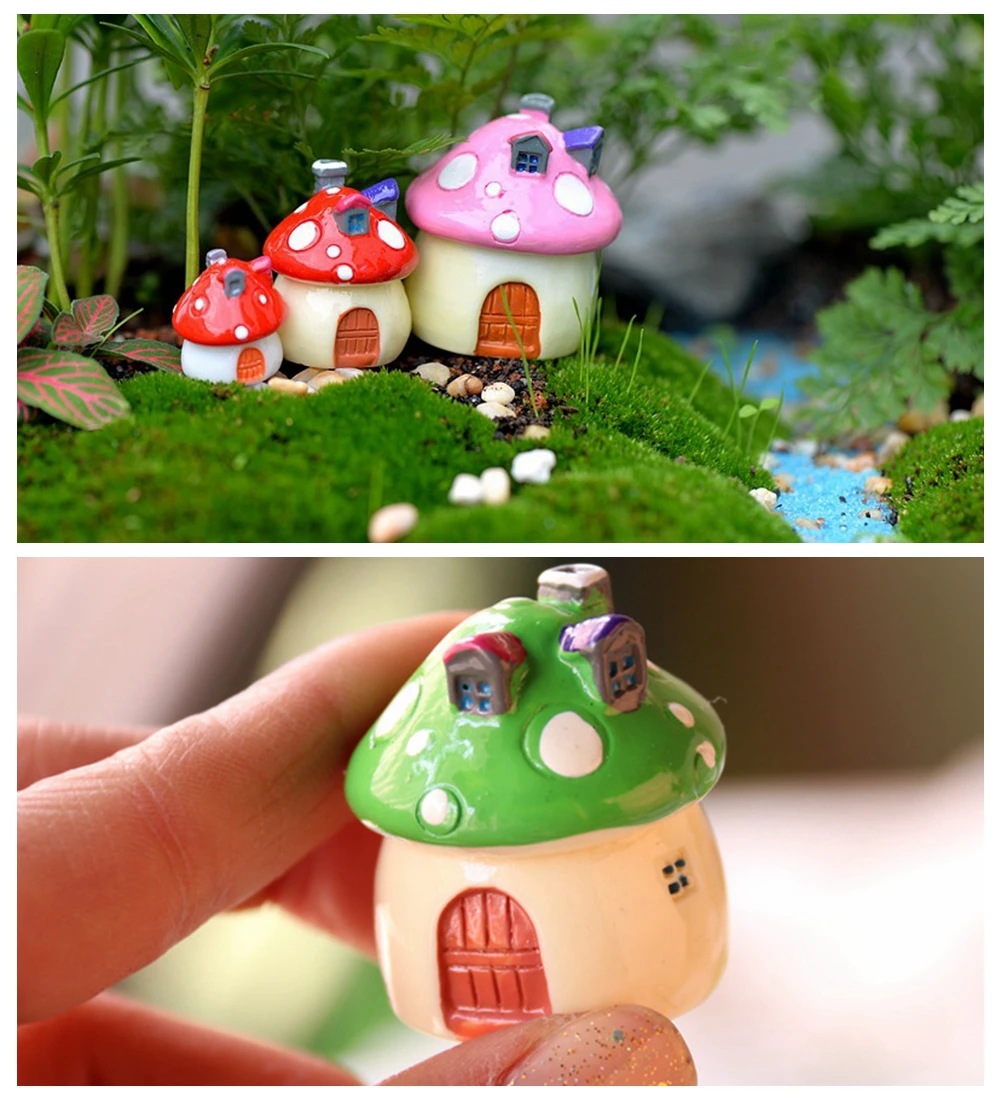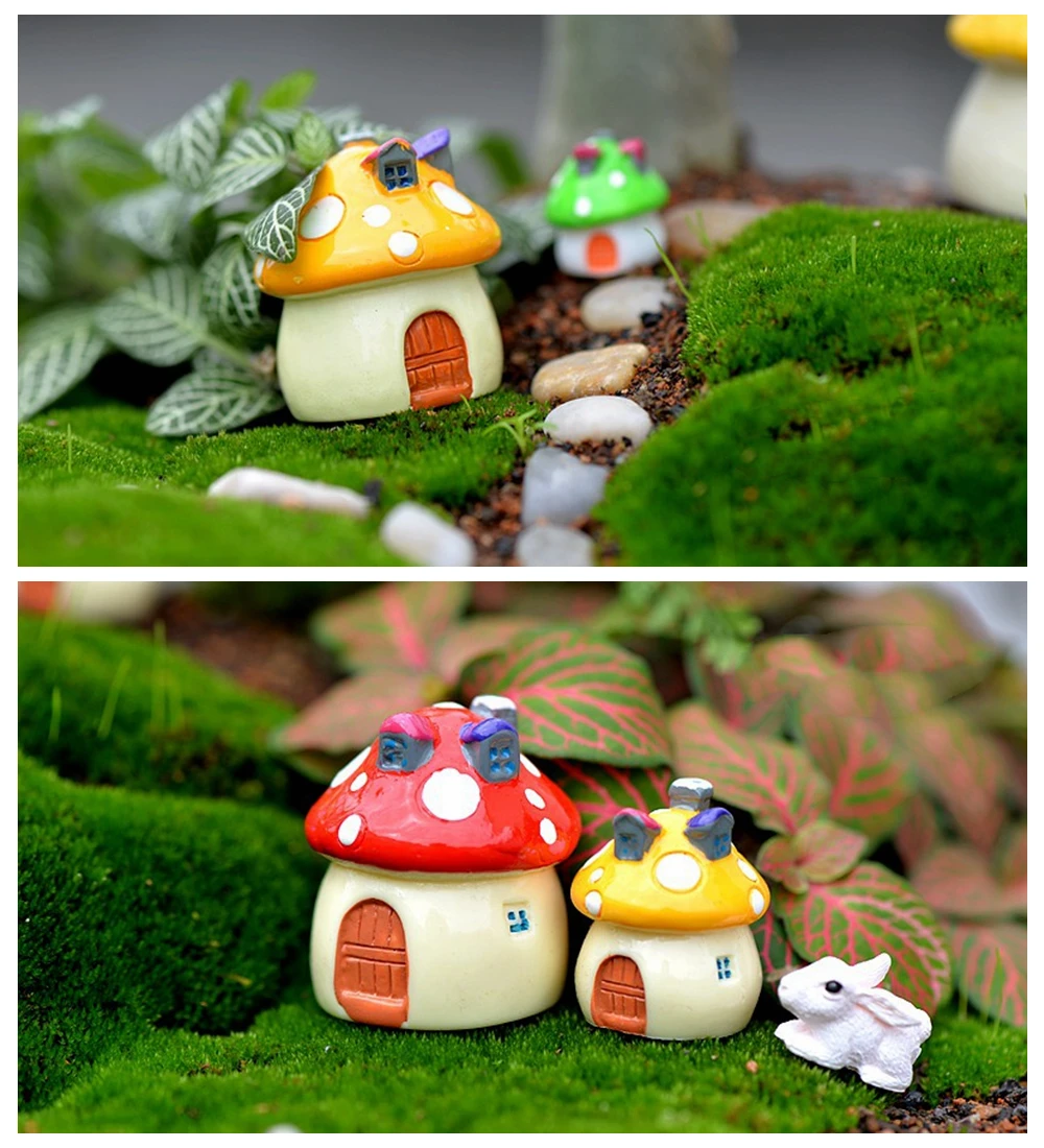 Made of durable synthetic resin material for long term use. Not easy to decay like real wooden miniature. Nontoxic, does not pollute the microscopic plants Tiny mushroom house Miniature landscape accessories Great decoration for moss, succulent, bonsai, micro landscape in garden and other places. Micro landscape ornaments for any miniature garden, it build a fairy world for you when decor them into your mini garden.
