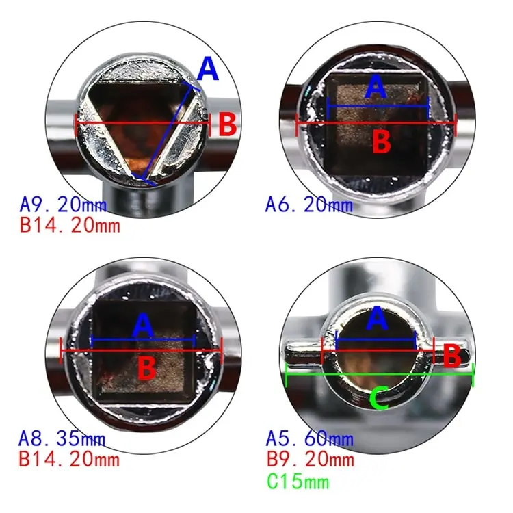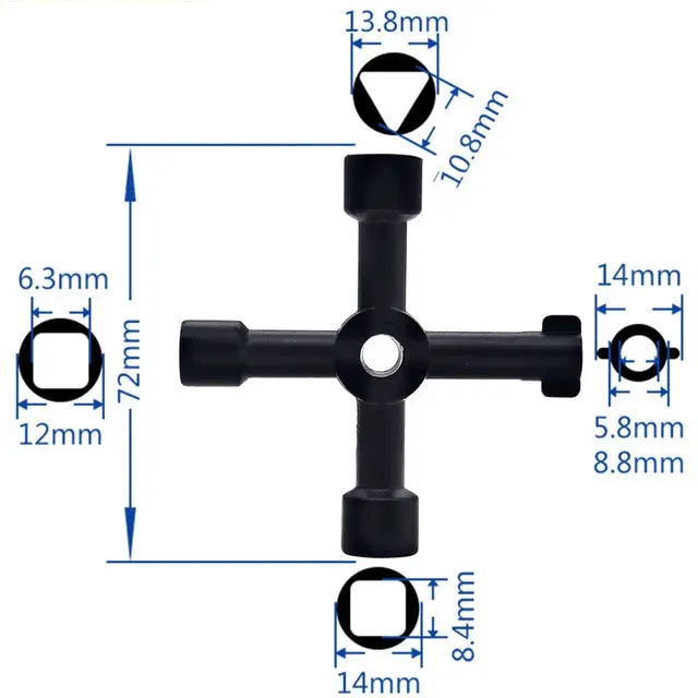 4 Way Universal Cross Triangle Wrench KEY for Train Electrical Elevator Cabinet Valve Alloy Triangle