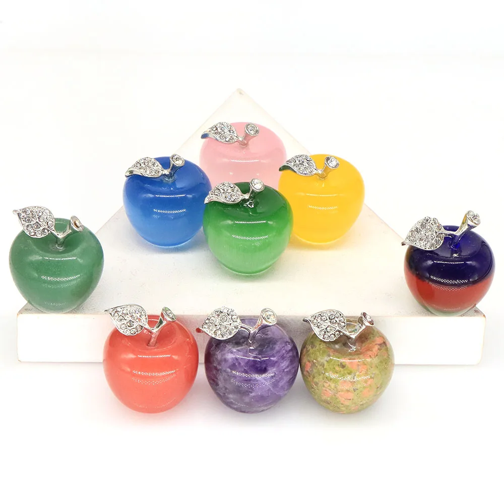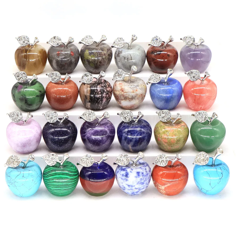 48 Colour Apple Statue Natural Gemstone Crystals Healing Stone Carving Reiki Figurines Crafts Room Decor Trinket Christmas Gifts