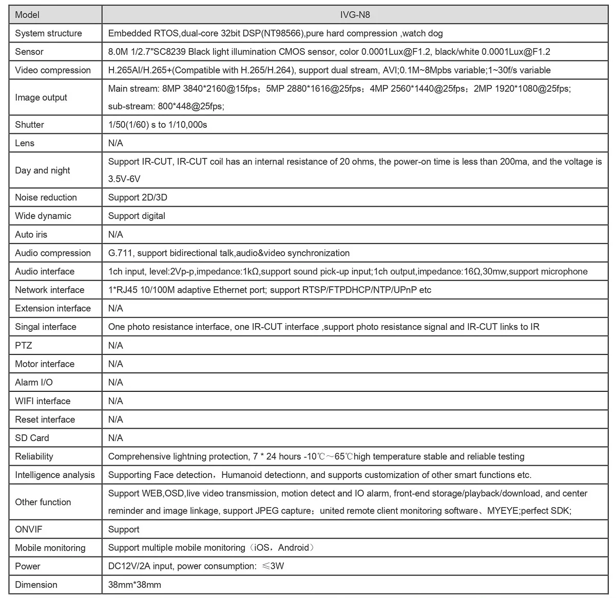 8MP:1/2.7 SC8239 Cmos senor cloor 0.1lux F1.2 black and white 0.01lux F1.2