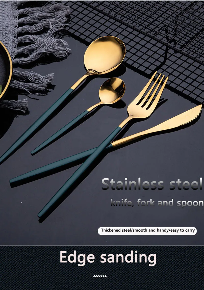 4pcs Upscale Gold Dinnerware Set Stainless Steel Tableware Set Knife Fork Coffee Spoon Flatware Set Dishwasher Safe Cutlery Set