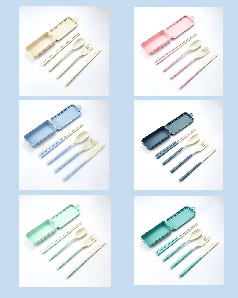 4Pcs Wheat Straw Dinnerware Set Portable Tableware Knife Fork Spoon Chopsticks Set Travel Cutlery Eco-Friendly Utensil Box