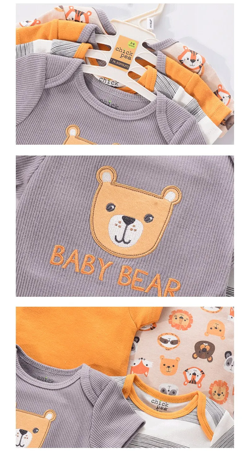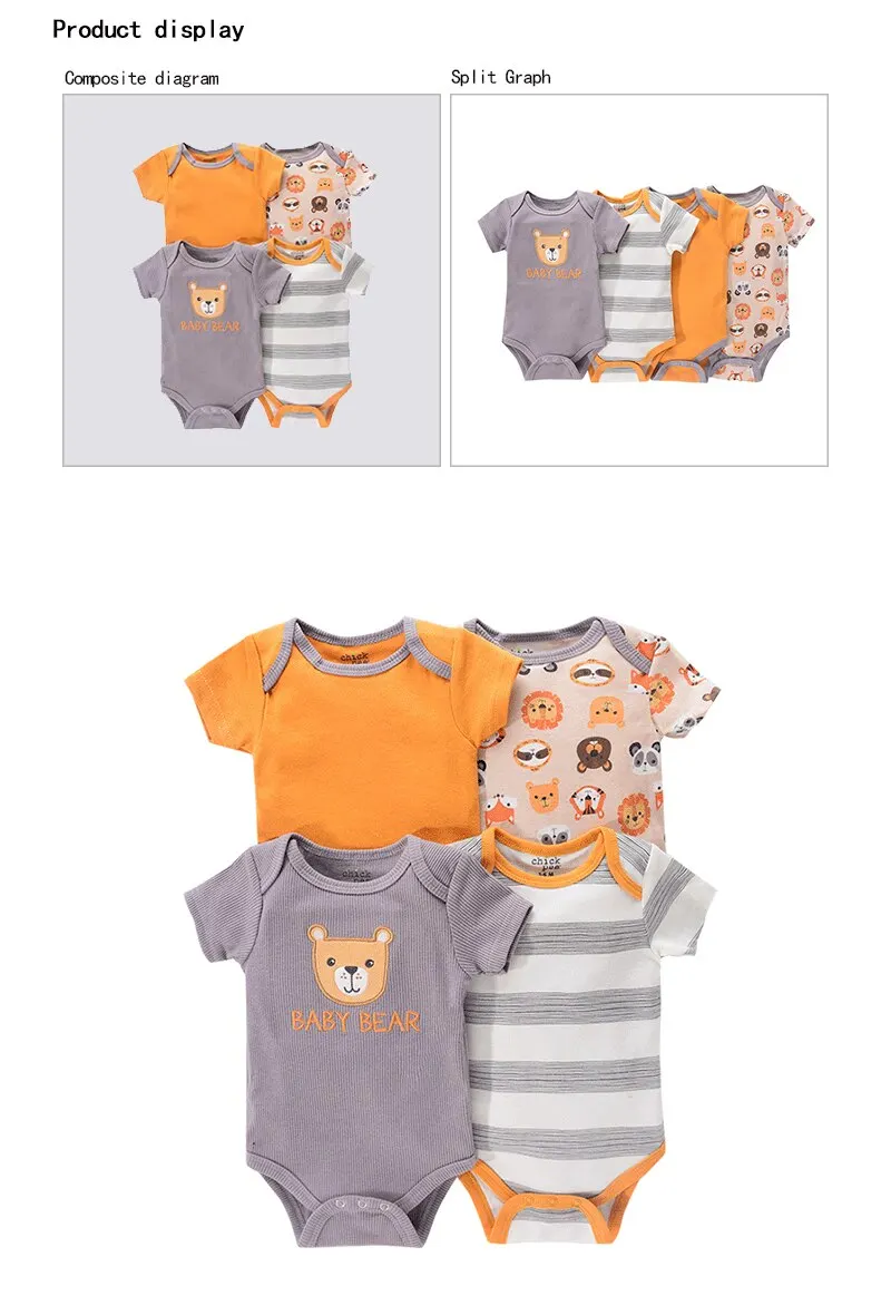 4Sets Baby Short Sleeve Cartoon Bear Bodysuits Infant Romper Girls Boys Soft Cotton