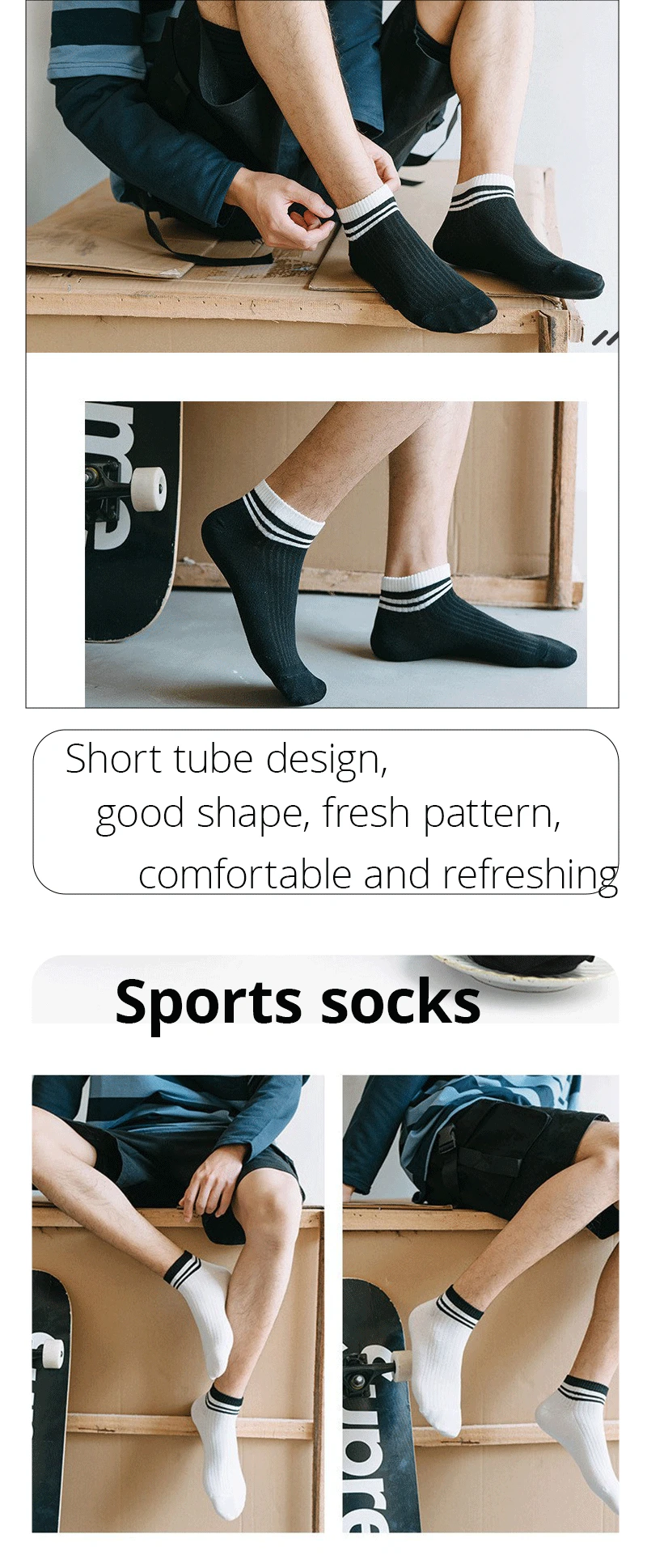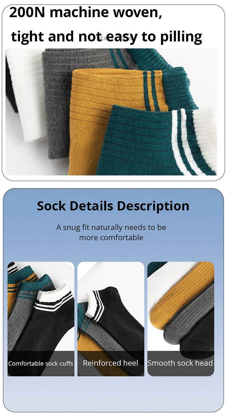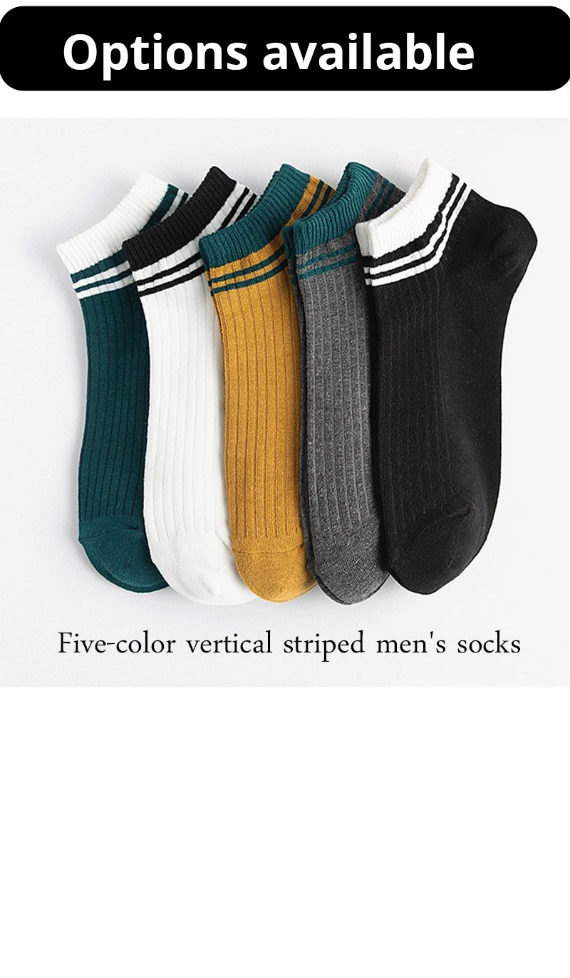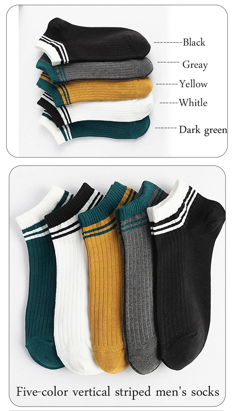 5 Pairs Sports Breathable Low Cut Boat Socks Spring Summer Cotton Striped Sports Korean Preppy Style Men Socks