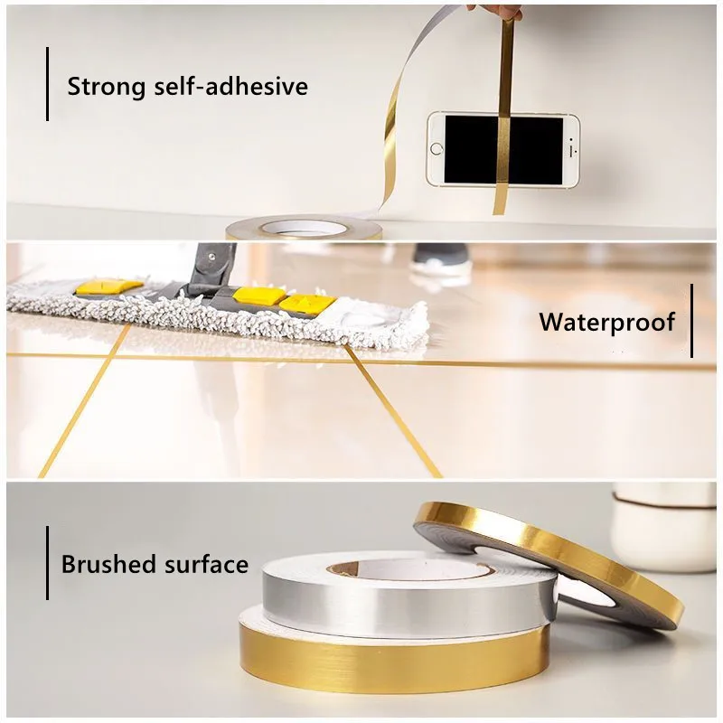 50M Tile Tape Self-Adhesive Floor Wall Seam Sealant Waterproof Wall Sealing Tape Adhesive Floor Tile Strip Seam Golden Silver